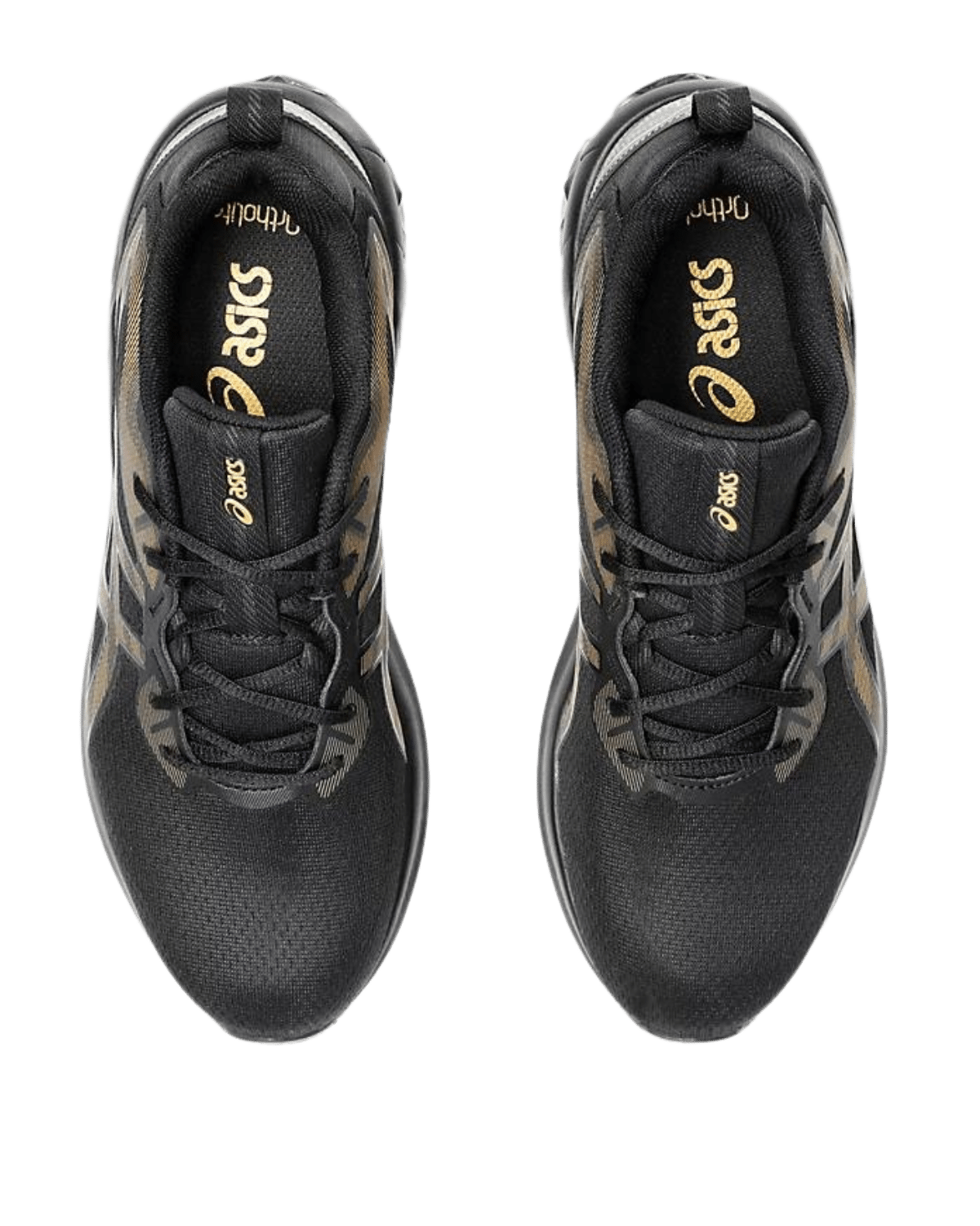 נעל ספורט‑סטייל לגברים מבית ASICS, בגוון שחור עם פרטים בזהב טהור.