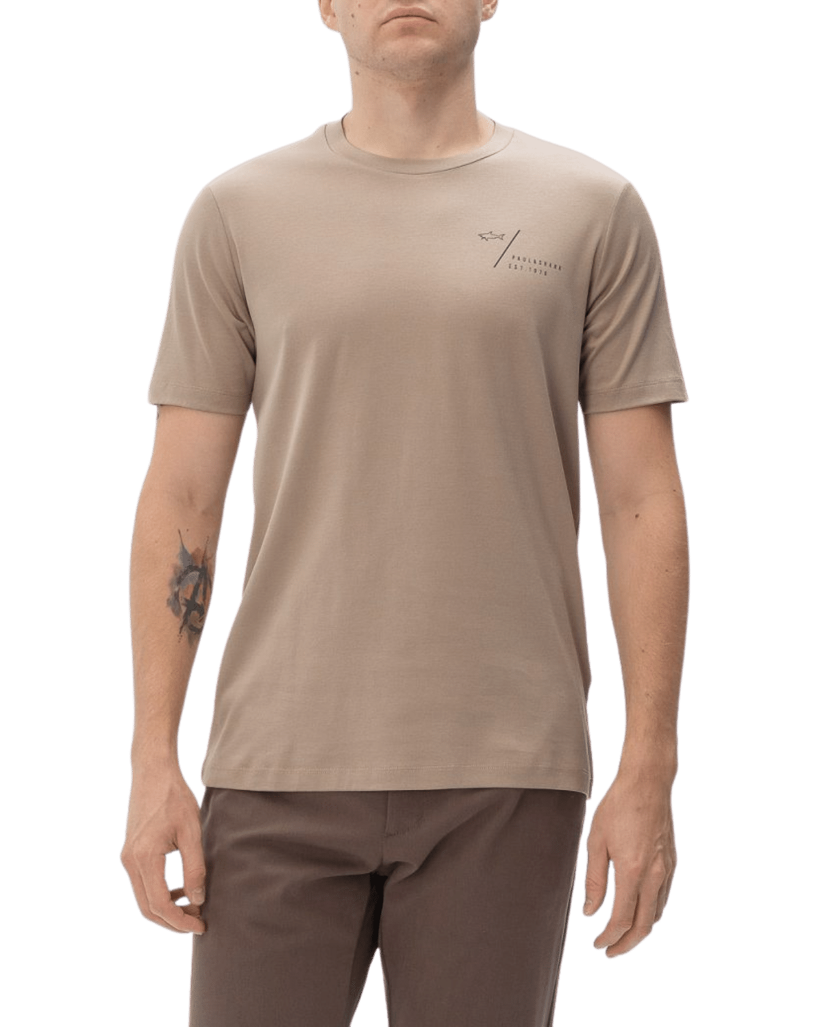 החולצה בגזרה רגילה עם שרוולים קצרים וצווארון עגול. בגב החולצה משולב הדפס ייחודי שמעניק לה מראה מודרני ובולט.