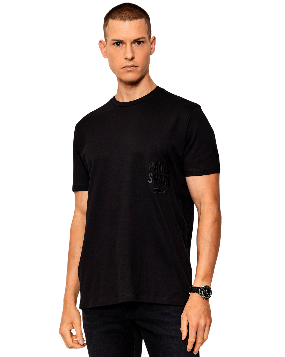 העיצוב הנקי כולל צווארון עגול ושרוולים קצרים, עם לוגו כריש קטן רקום על החזה המוסיף נגיעה אלגנטית ויוקרתית.