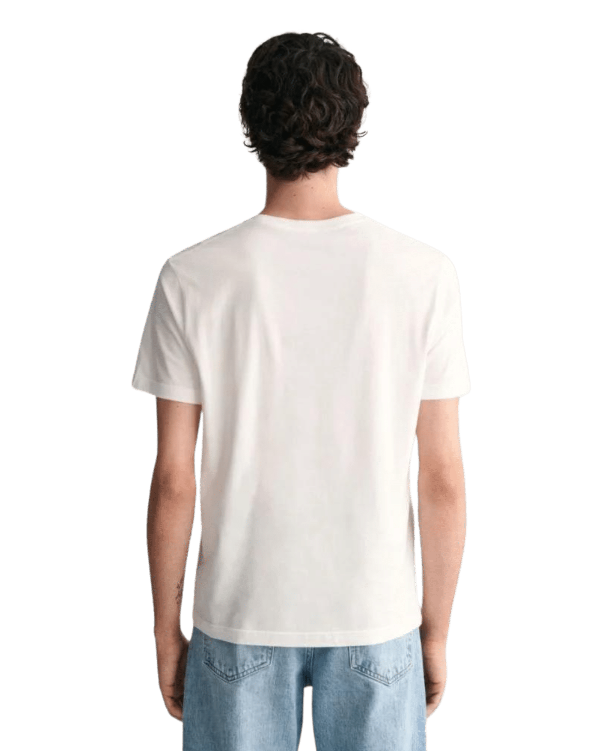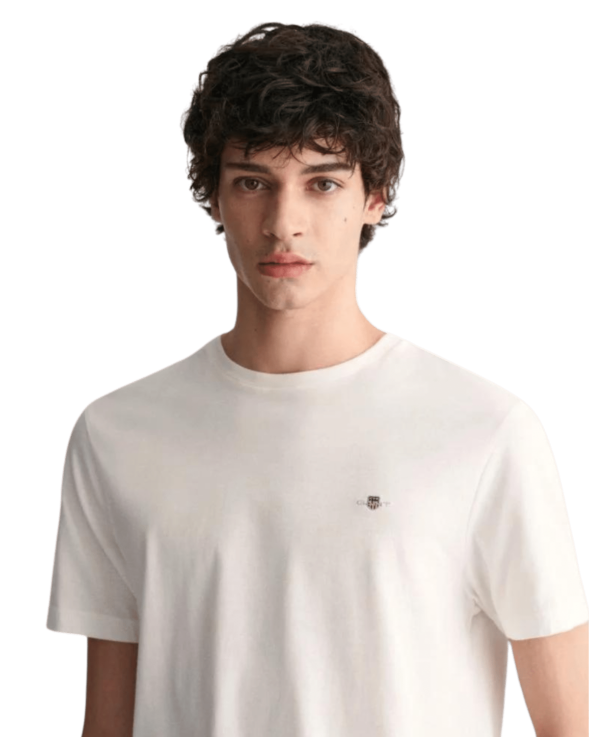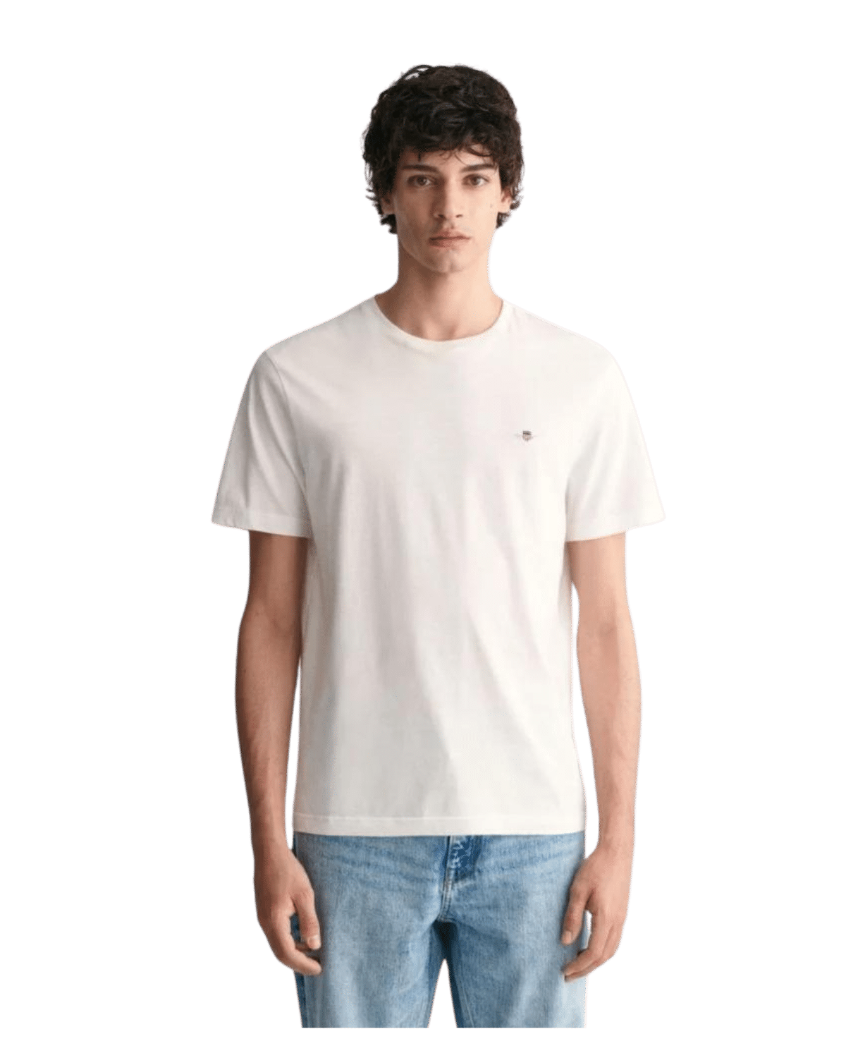 חולצת טי-שירט קצרה לגברים בצבע לבן, המשלבת סגנון קלאסי עם נוחות יומיומית.