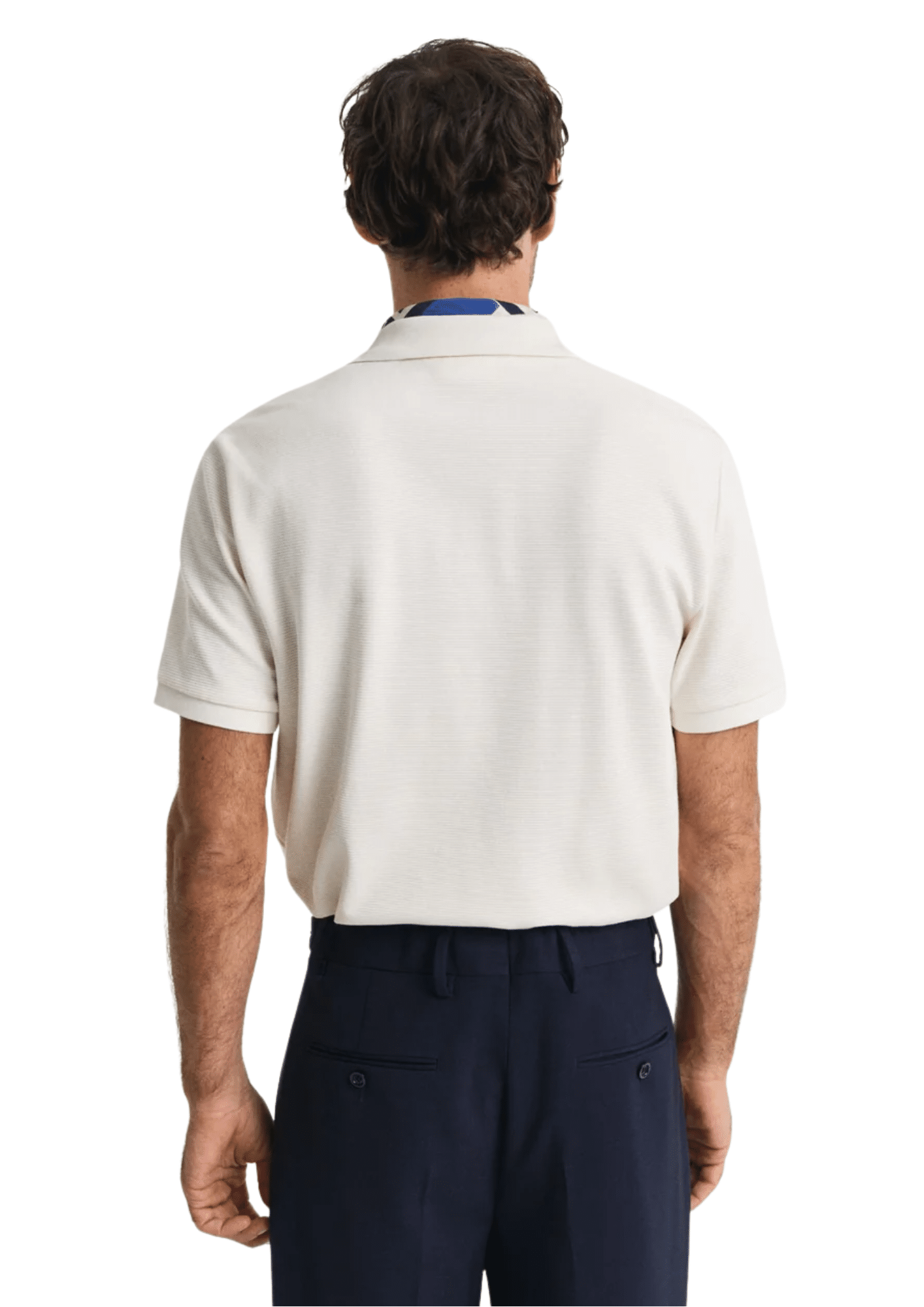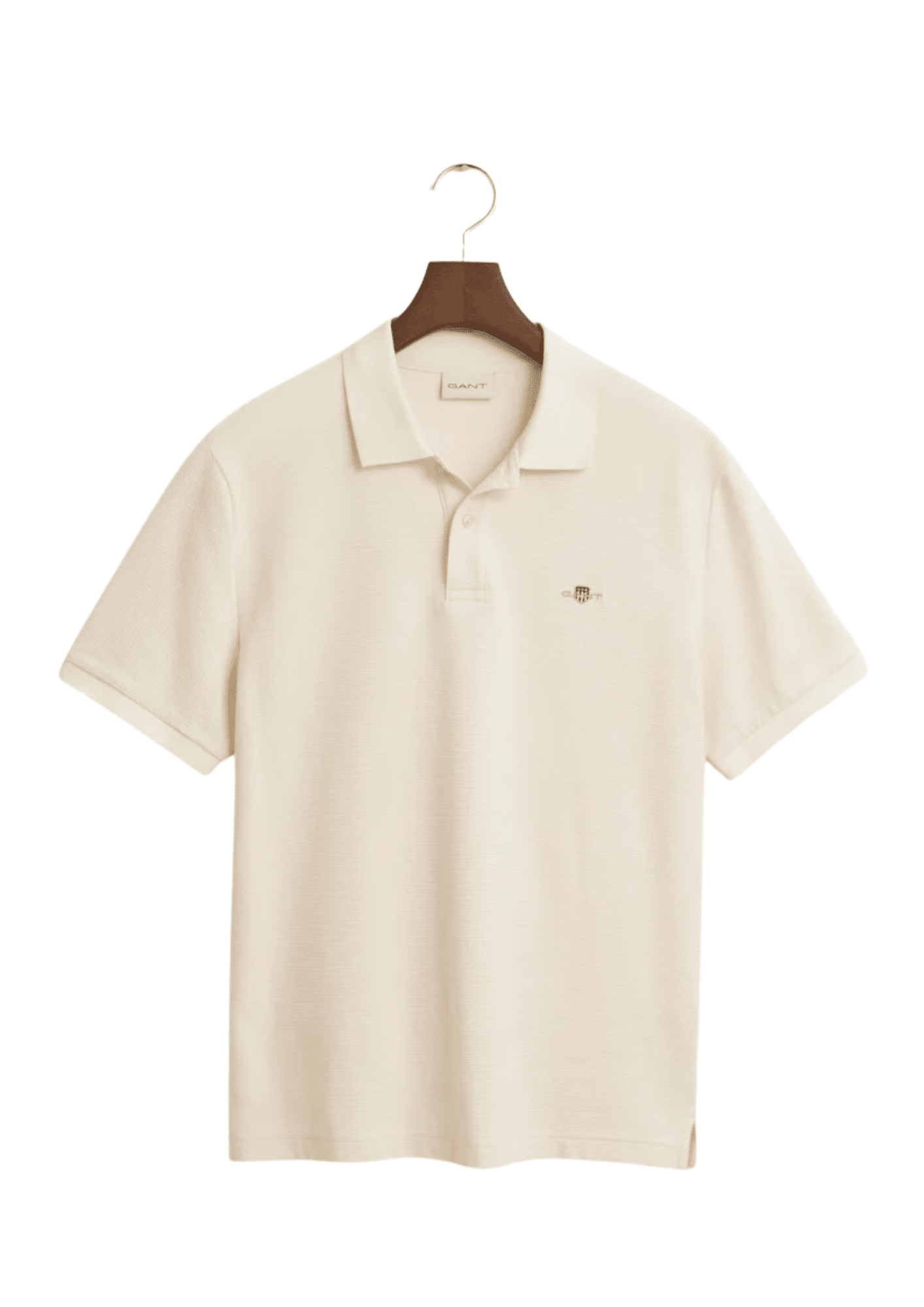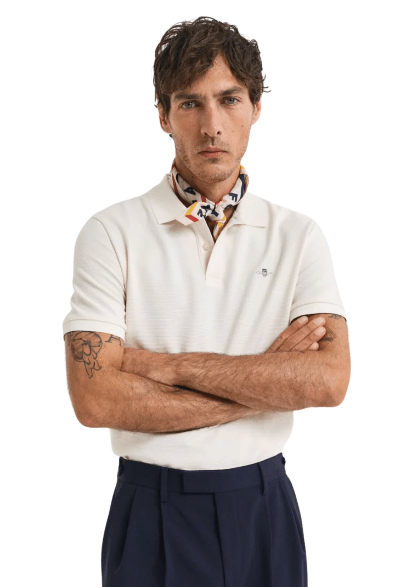 חולצת פולו קצרה לגברים בצבע קרם מבית GANT המשלבת סגנון אלגנטי עם נוחות יומיומית.