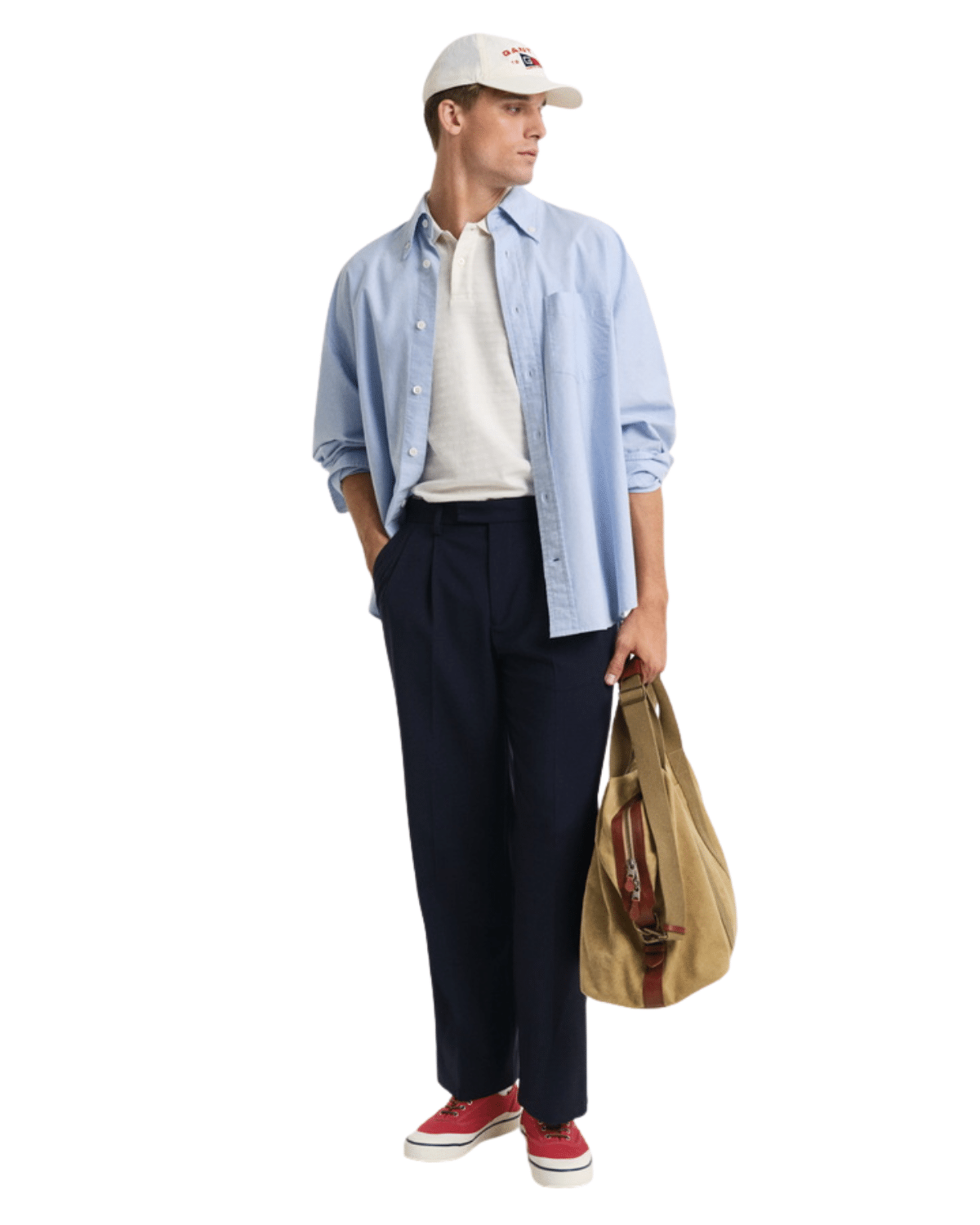 חולצת פולו לבנה לגברים מבית GANT, בעיצוב על-זמני שמשלב אלגנטיות ונוחות.