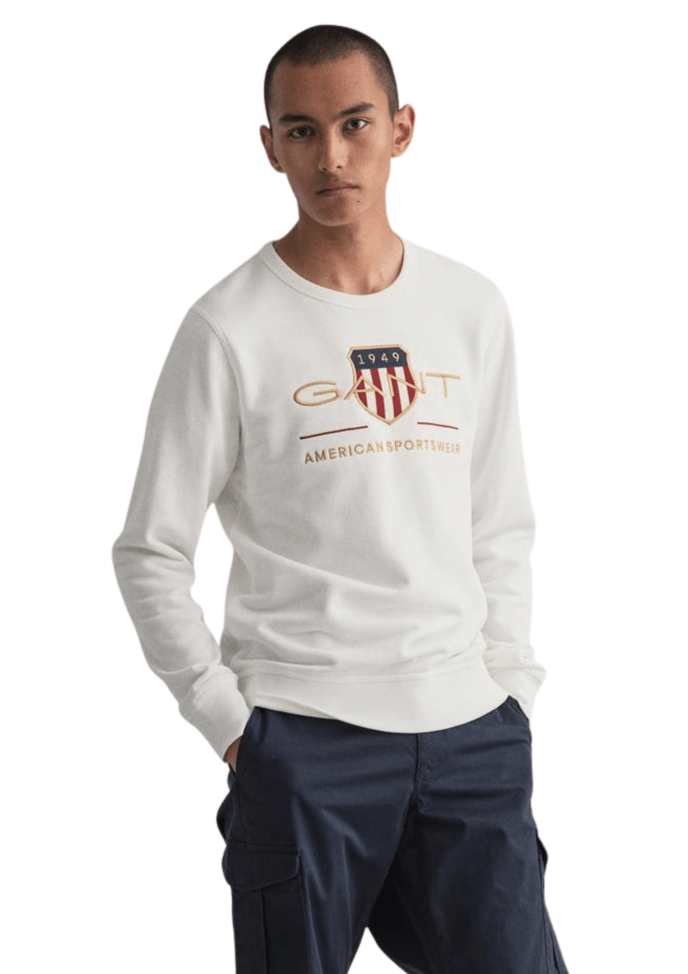 סווטשירט קלאסי לגברים מבית GANT, מדגם Archive Shield עם צווארון עגול (Crew Neck).