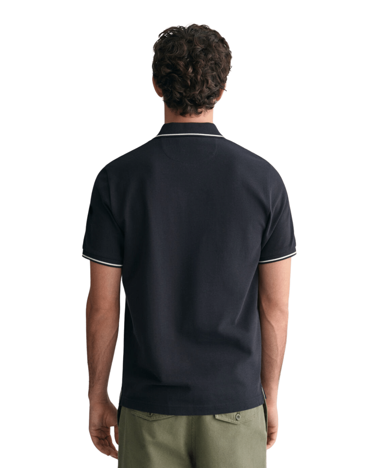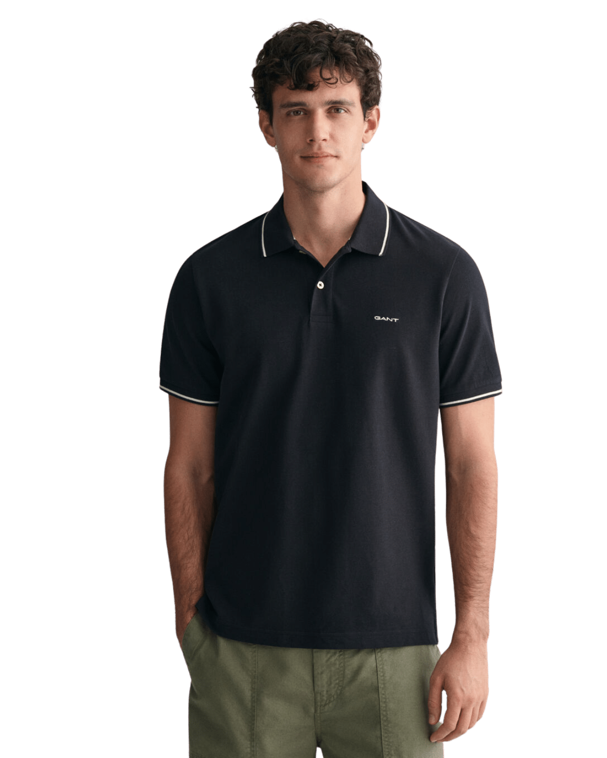 חולצת פולו קצרה לגברים מבית המותג היוקרתי גנט, בצבע שחור אלגנטי.