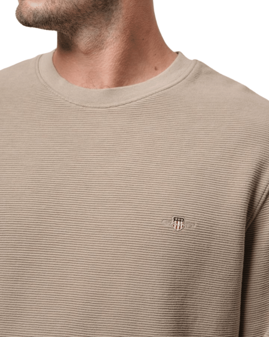הצווארון הוא צווארון עגול (Crew Neck) עם תפרים מחוזקים..