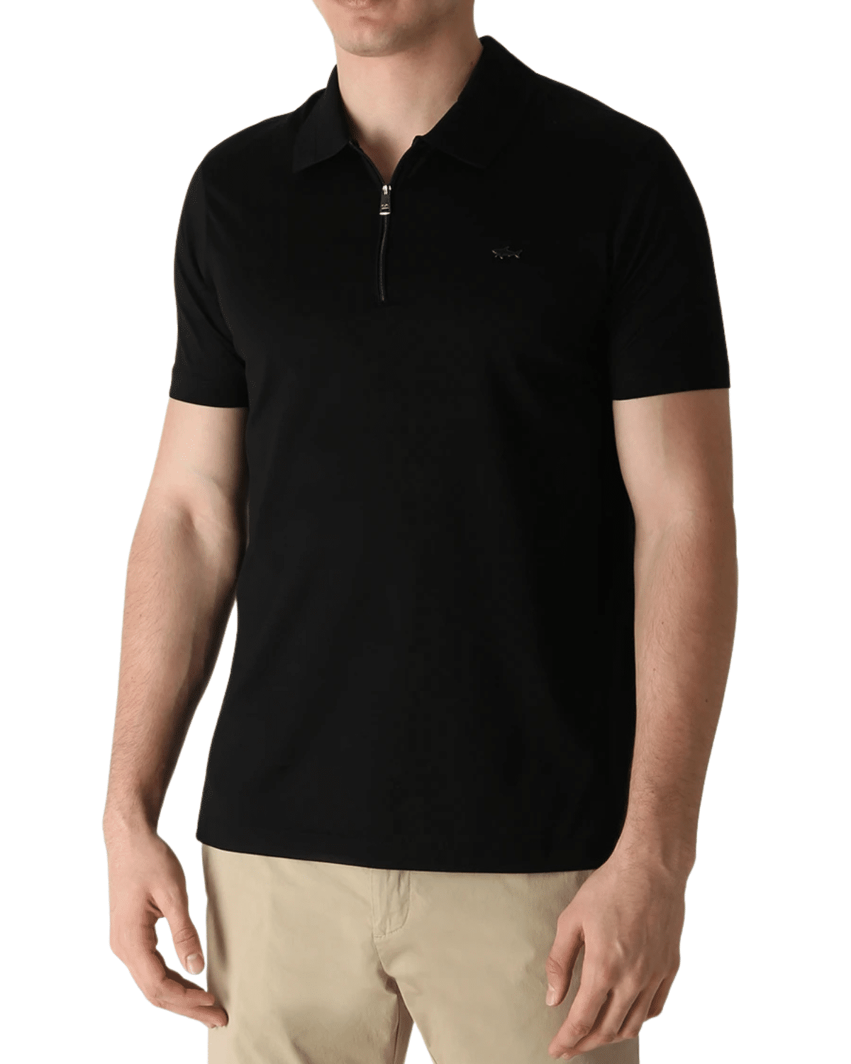 חולצת פולו יוקרתית לגברים בצבע שחור קלאסי, עם סגירת רוכסן (ריצ'רץ') קדמית שמעניקה לה מראה מודרני ואלגנטי כאחד.