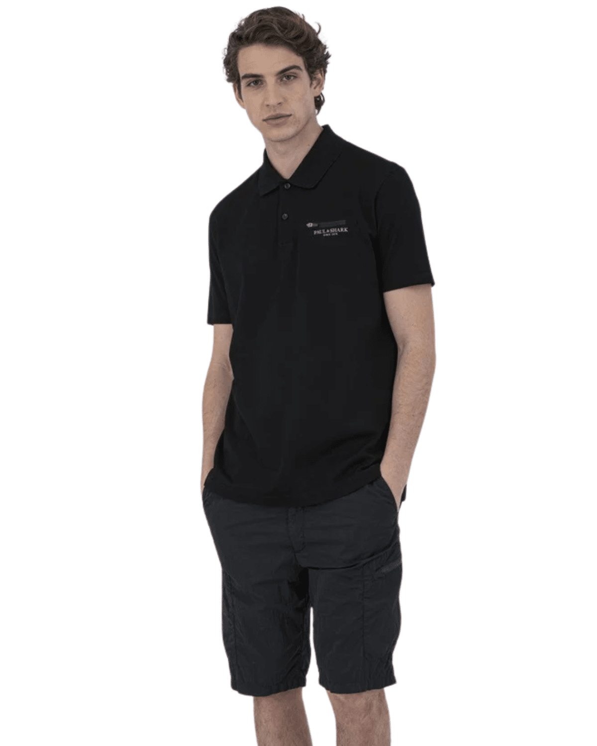 חולצת פולו יוקרתית לגברים בצבע שחור על-זמני, בעיצוב נקי אך בעל נוכחות, מבית המותג האיטלקי Paul & Shark.
