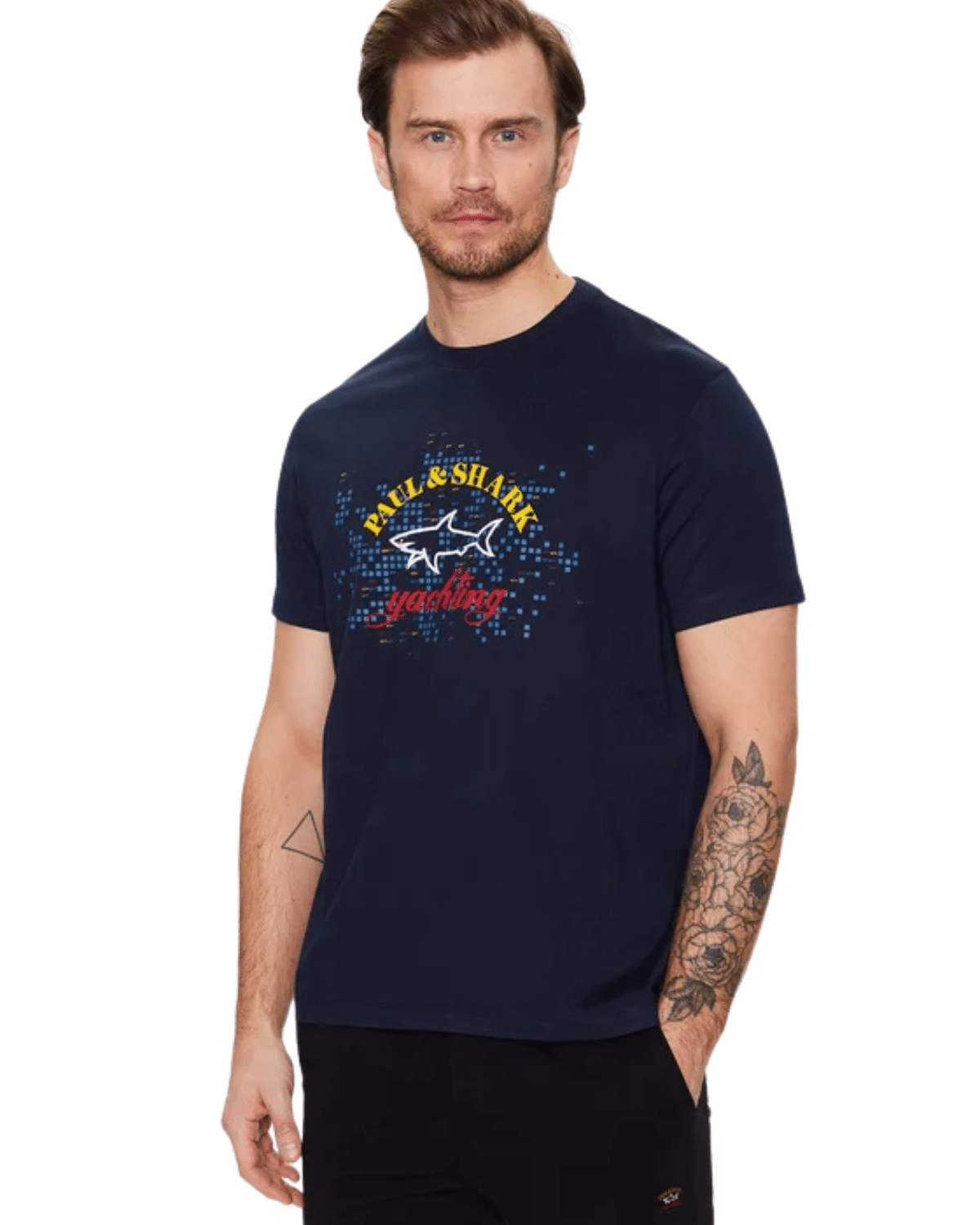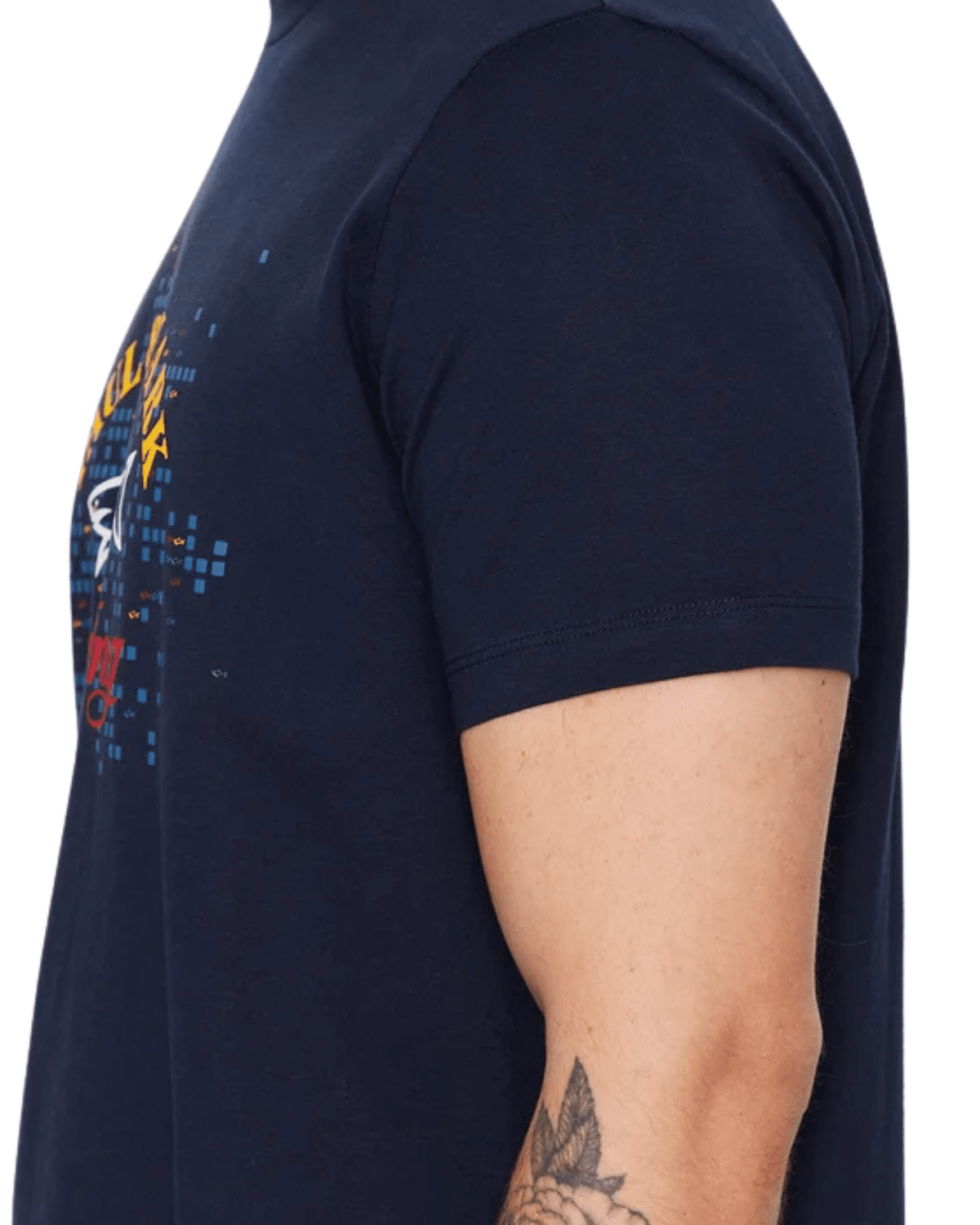 טי-שירט לגברים בצבע כחול כהה שמקרינה ביטחון עצמי.