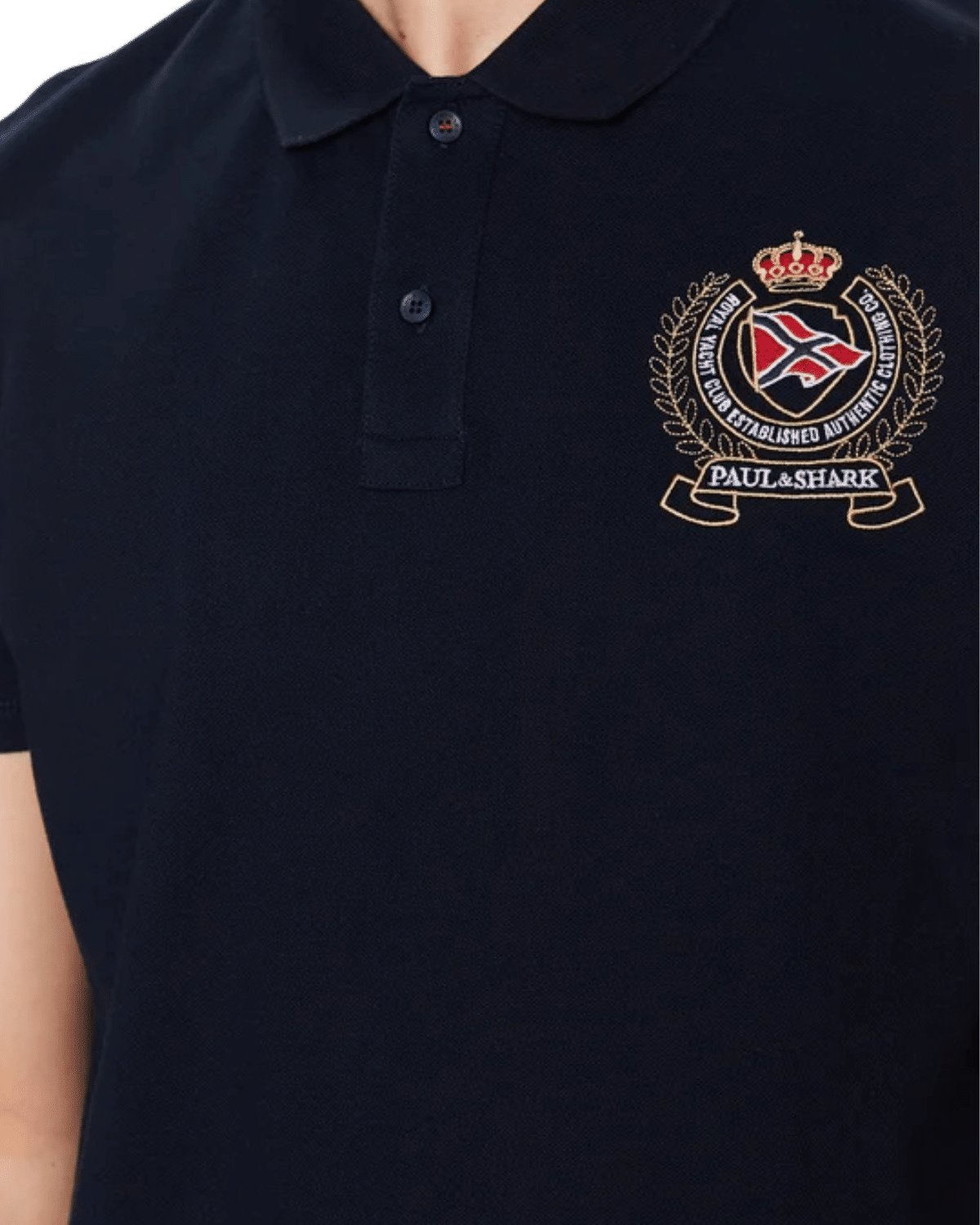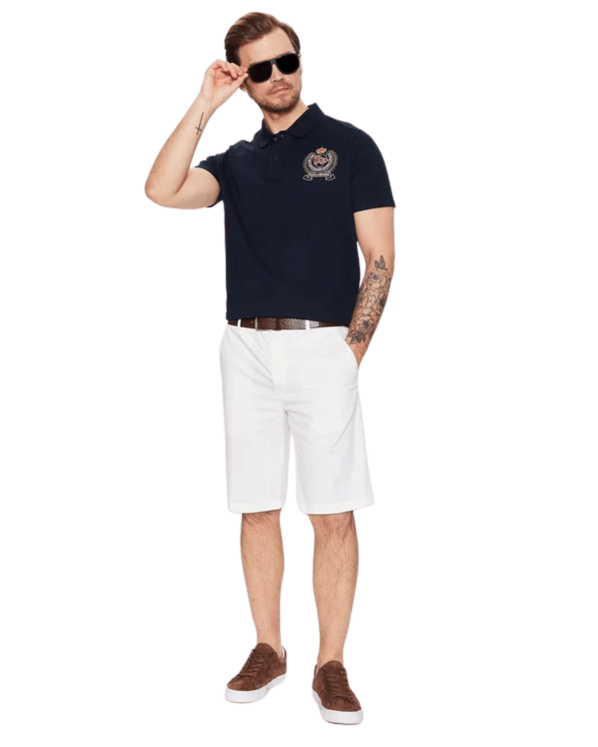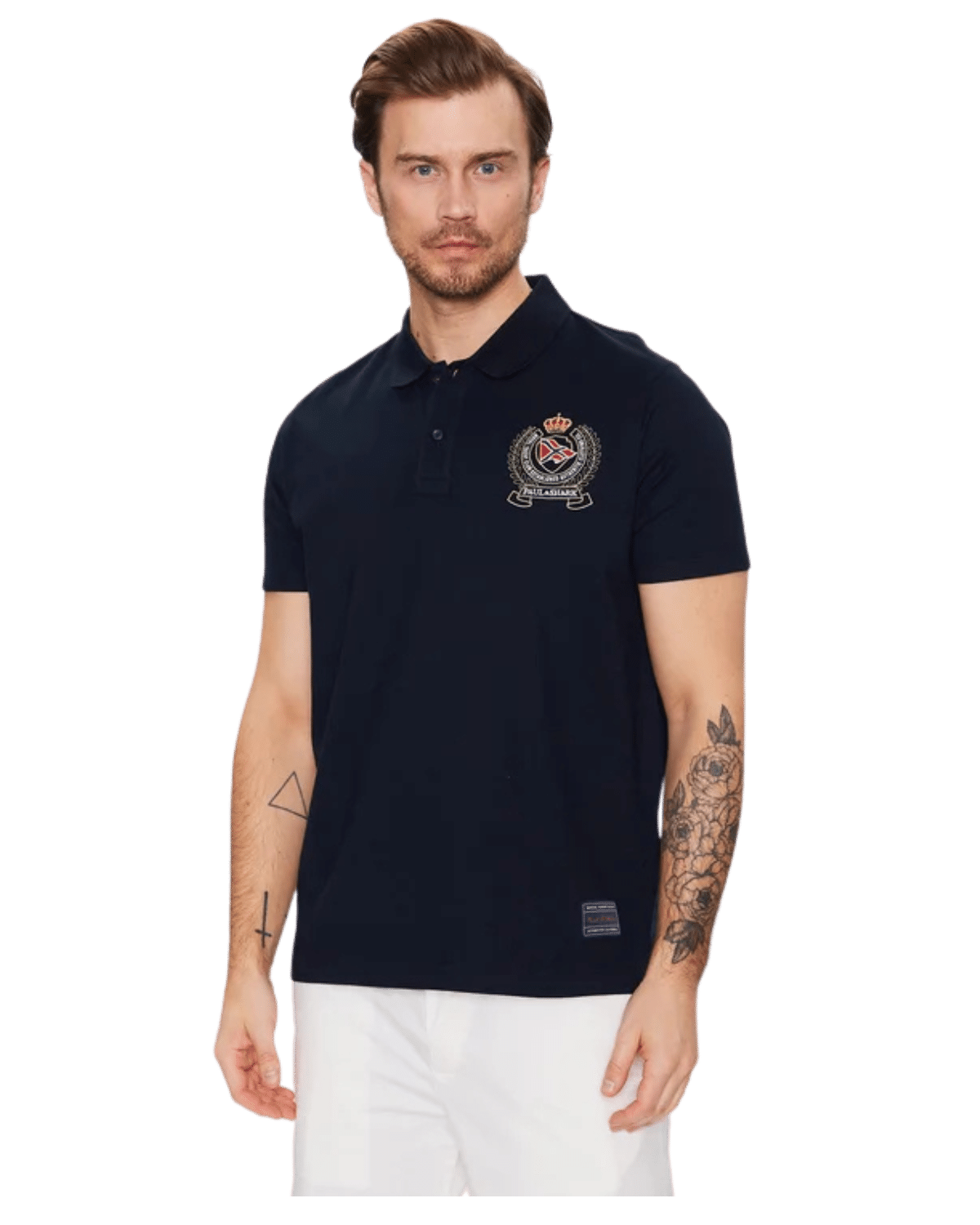 חולצת פולו לגברים בצבע שחור עמוק, המשלבת בין סגנון יוקרתי לבין ניחוח ספורטיבי עם מוטיבים ימאיים.