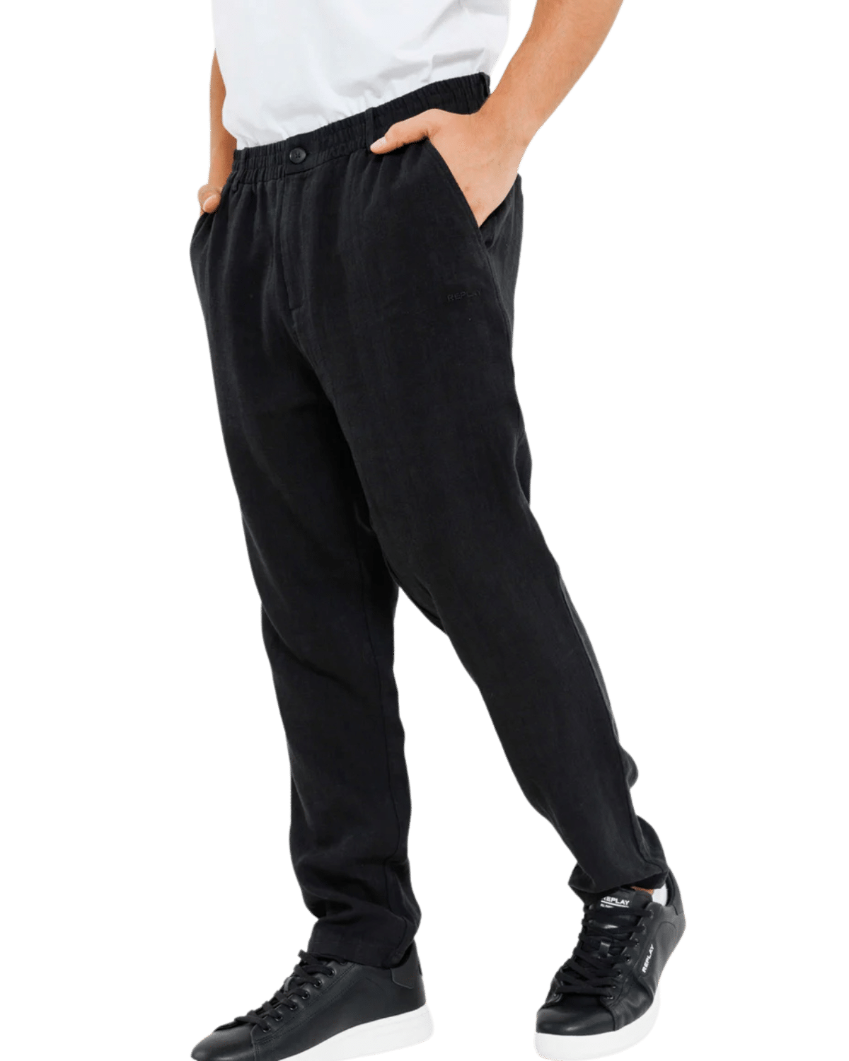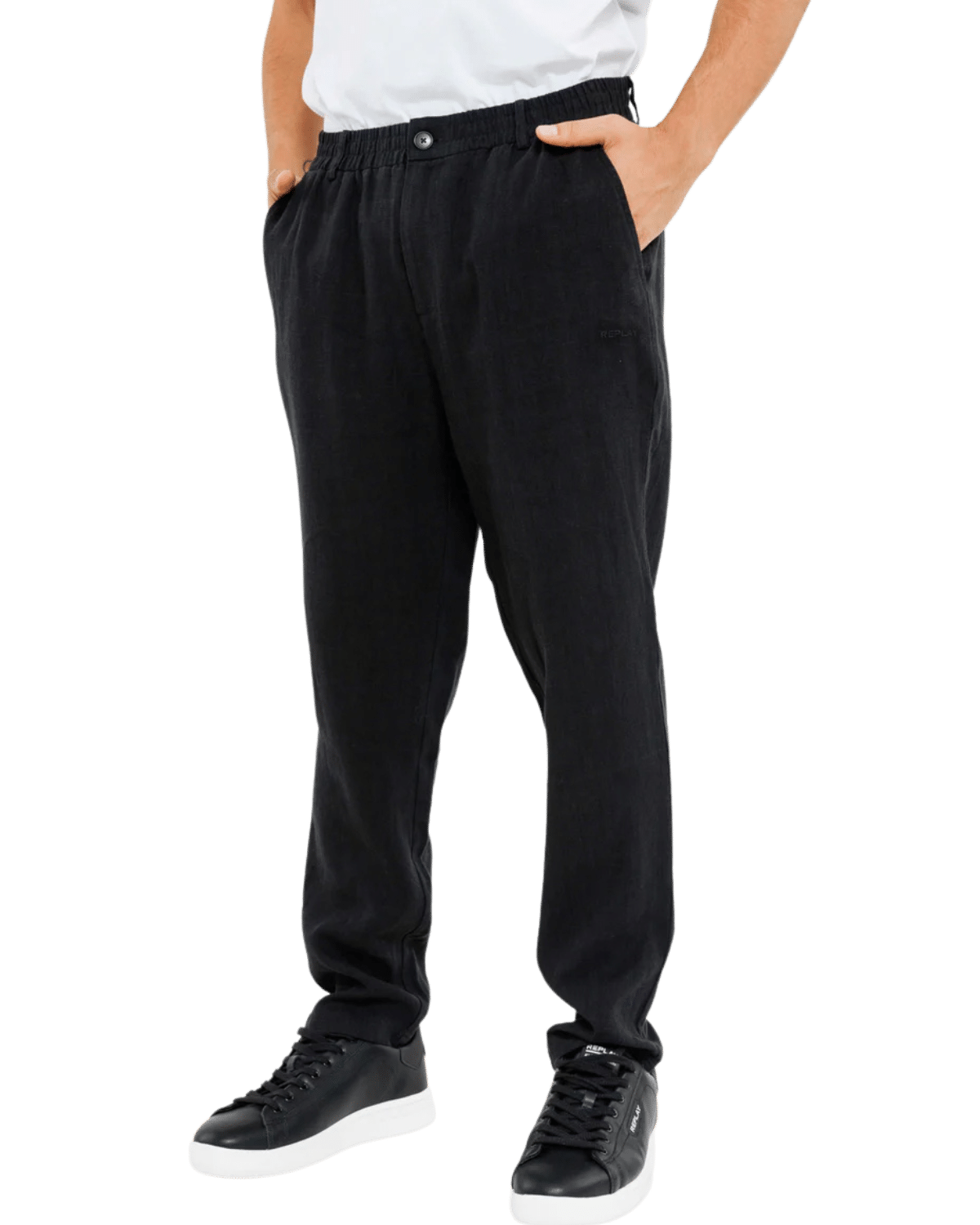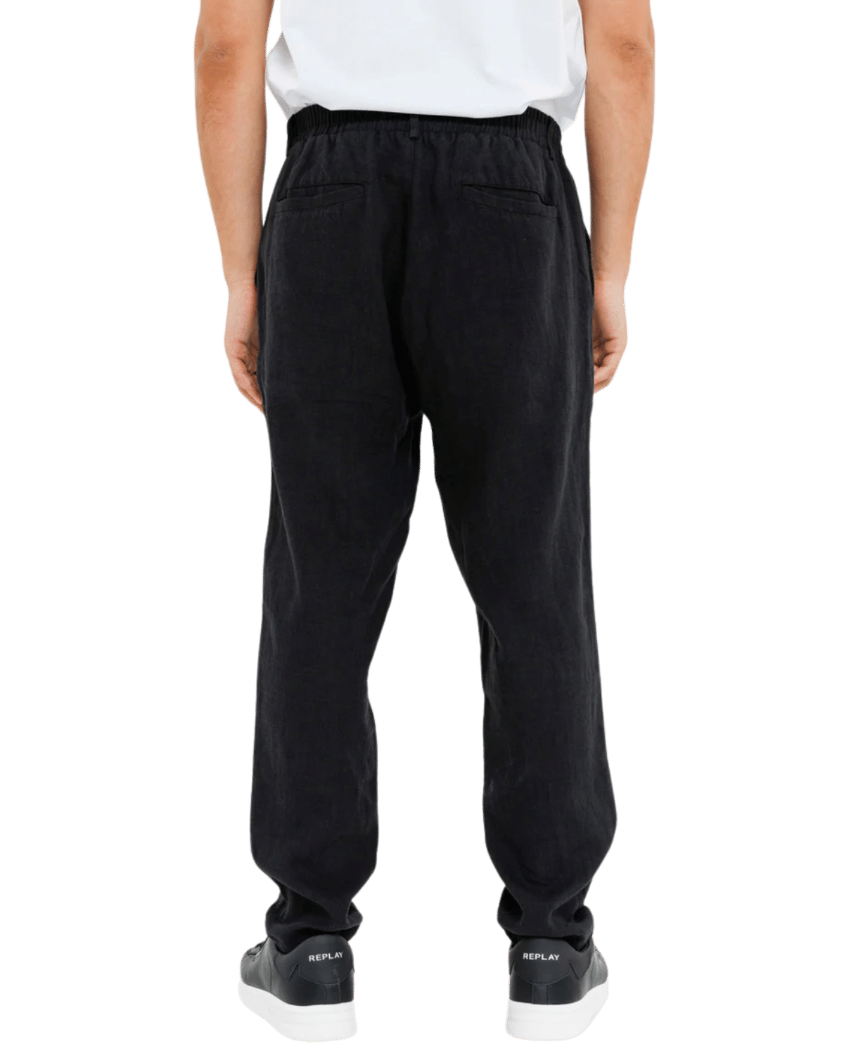 צאו לדרך עם מכנסי הפשתן הארוכים בגוון שחור עשיר.