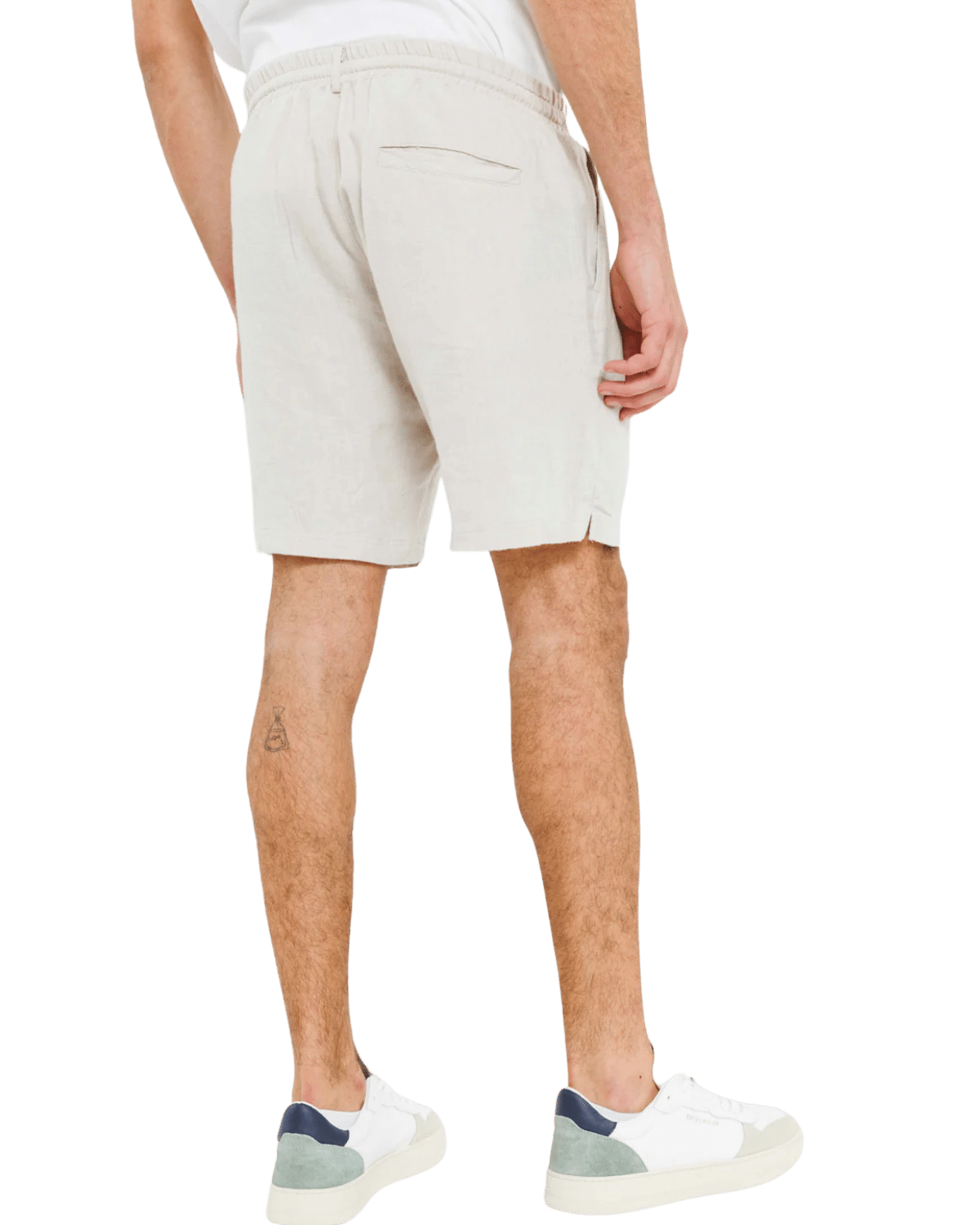 מכנסי פשתן קצרים לגברים בצבע קרם, עם גזרה קלאסית ונוחה המעניקה מראה טבעי ורגוע.
