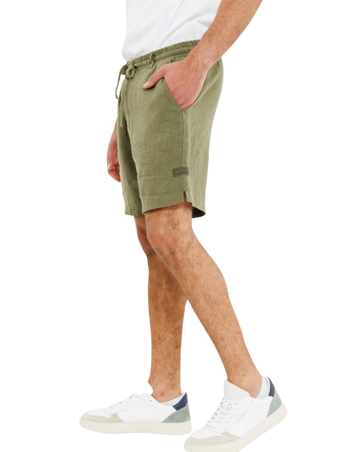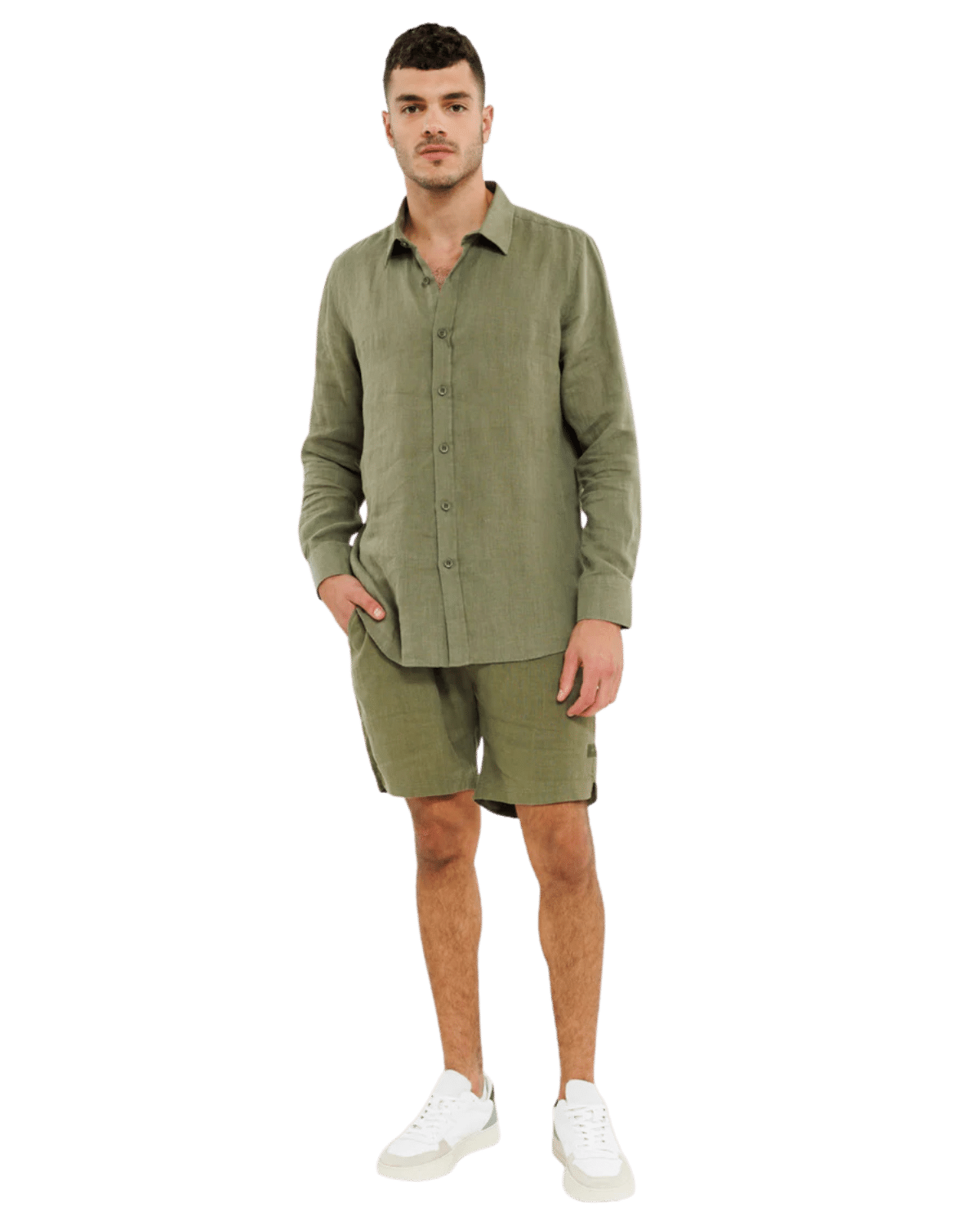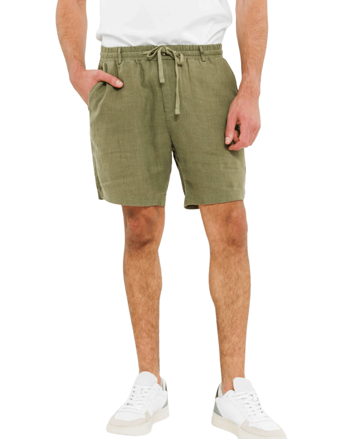 מכנסי פשתן קצרים לגברים בצבע זית, בעלי גזרה קלאסית ונוחה המשדרגת כל מראה יומיומי.