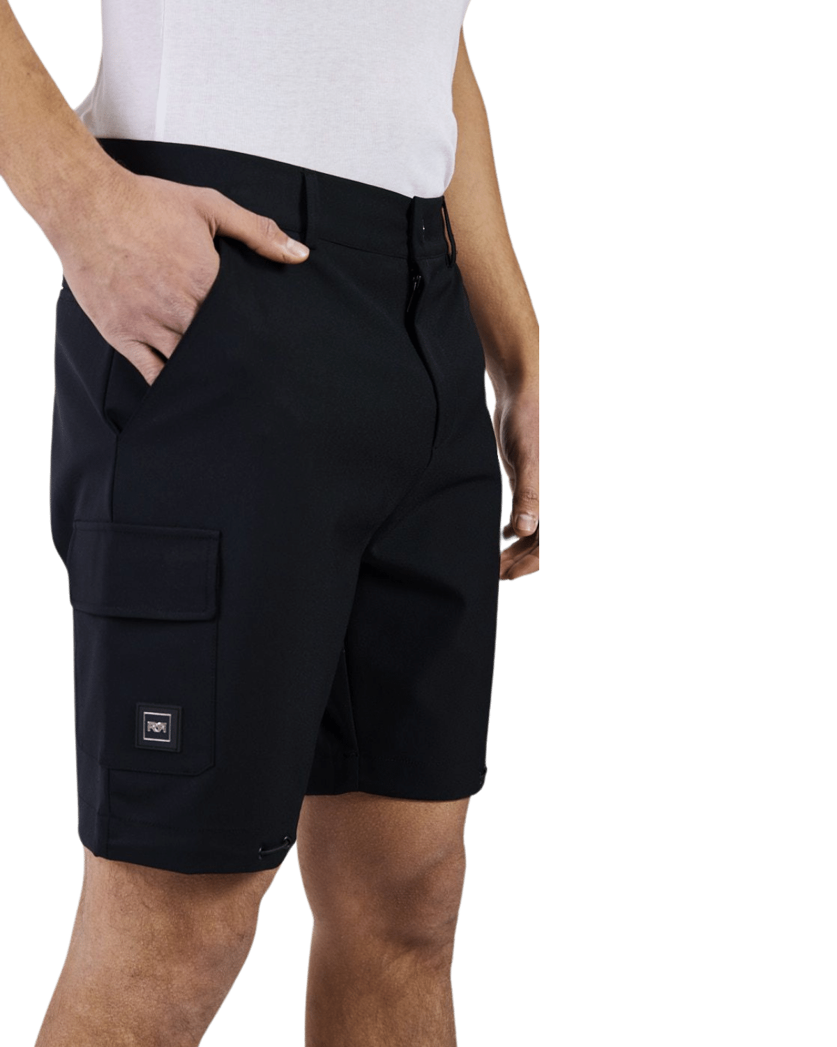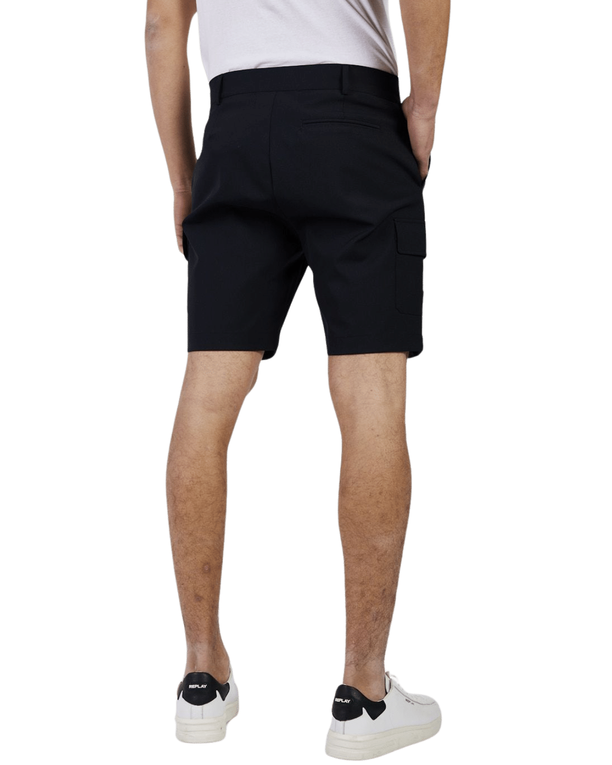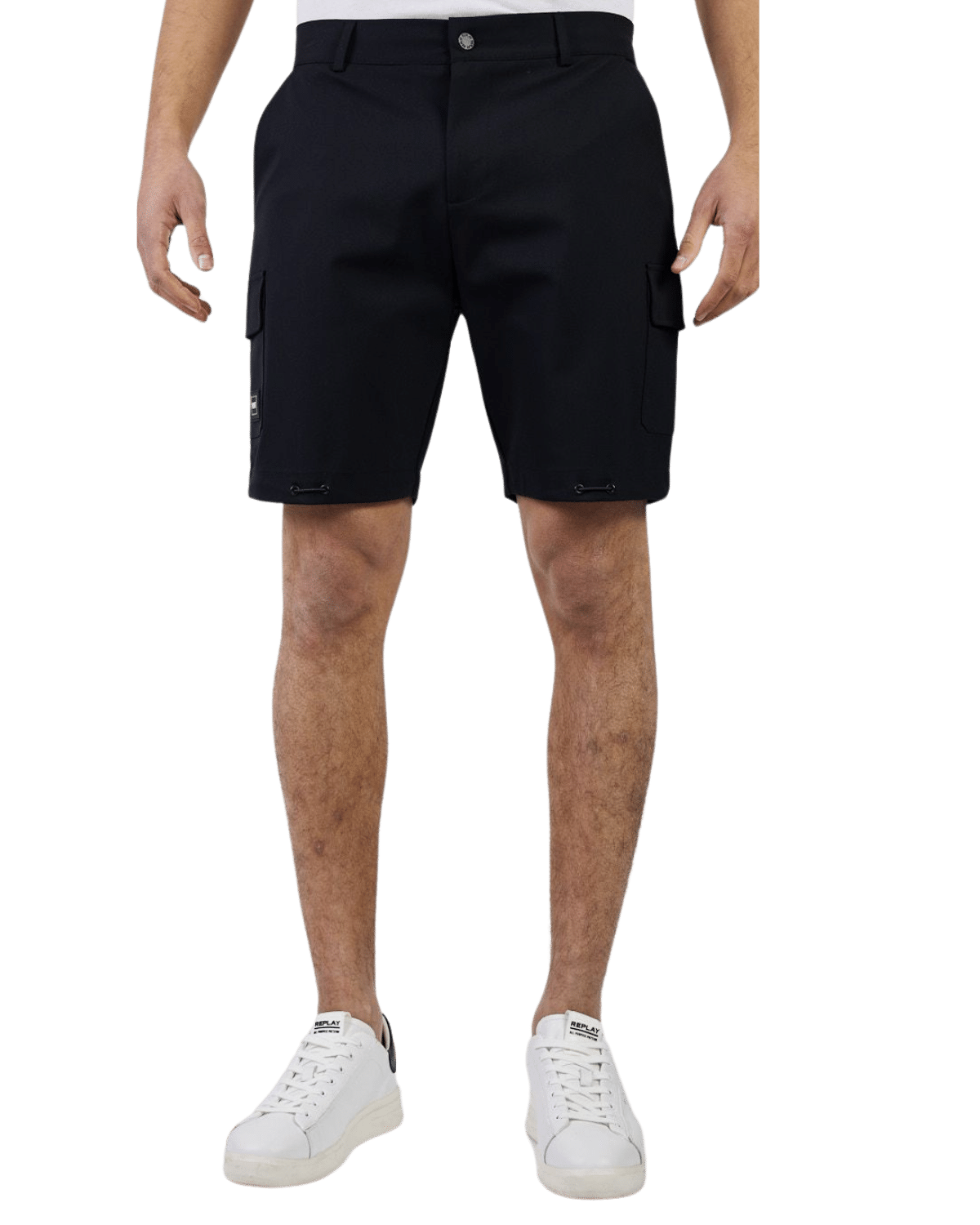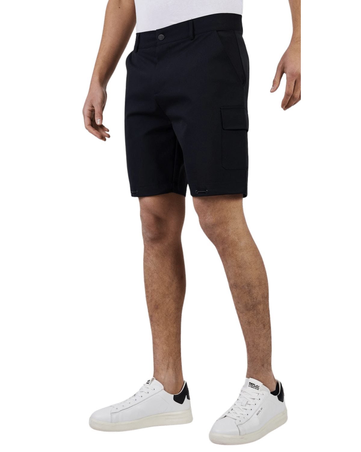 מכנסיים קצרים עם כיסים. למכנסיים גזרה ישרה וסגירת רכיסה וכפתור במותן.