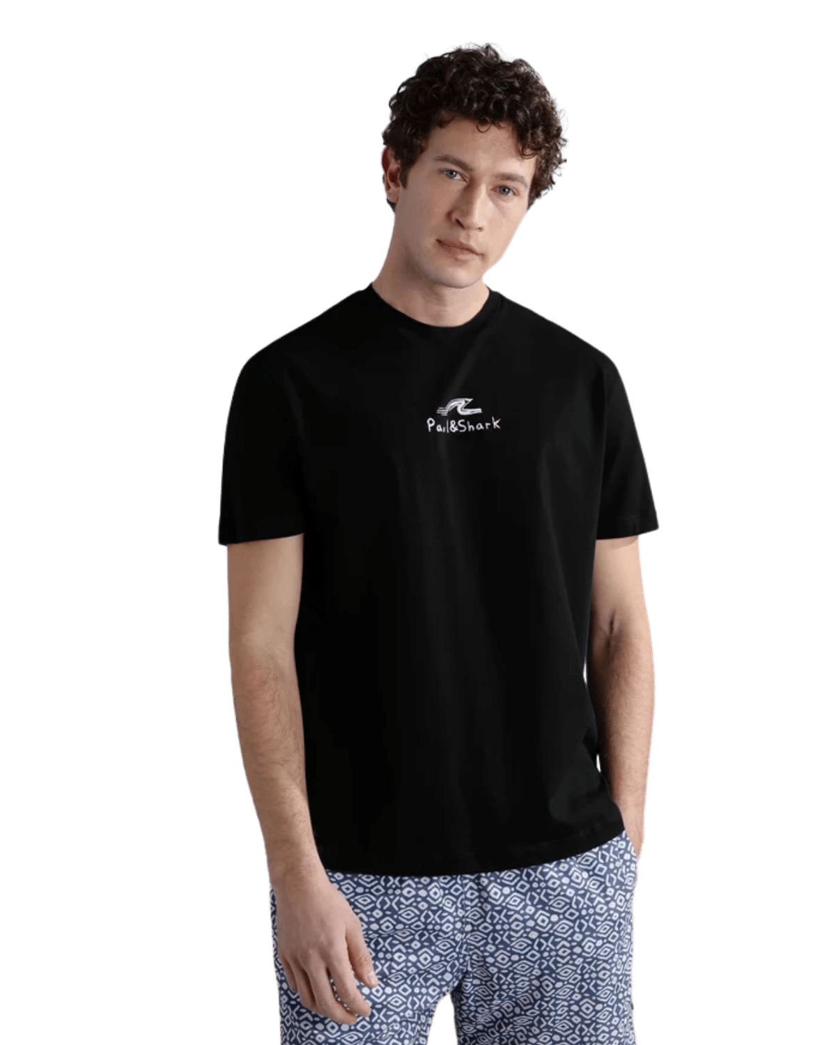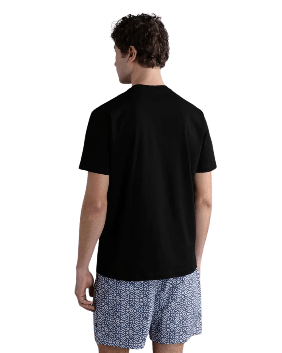 חולצת טי-שירט קצרה לגברים בצבע שחור, המשלבת סגנון יוקרתי עם נוחות יומיומית.