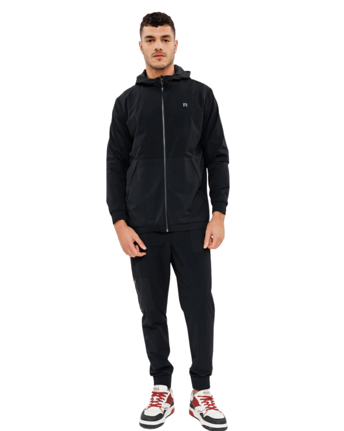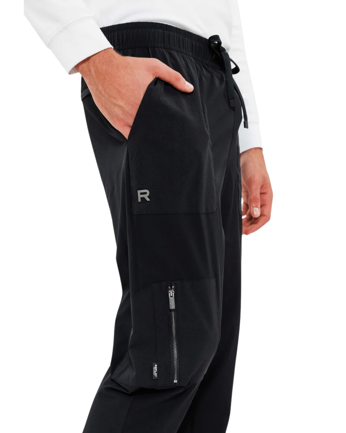המכנסיים כוללים כיסים צדדיים וכיס עם רוכסן, מושלמים לשימוש יומיומי ולספורט.