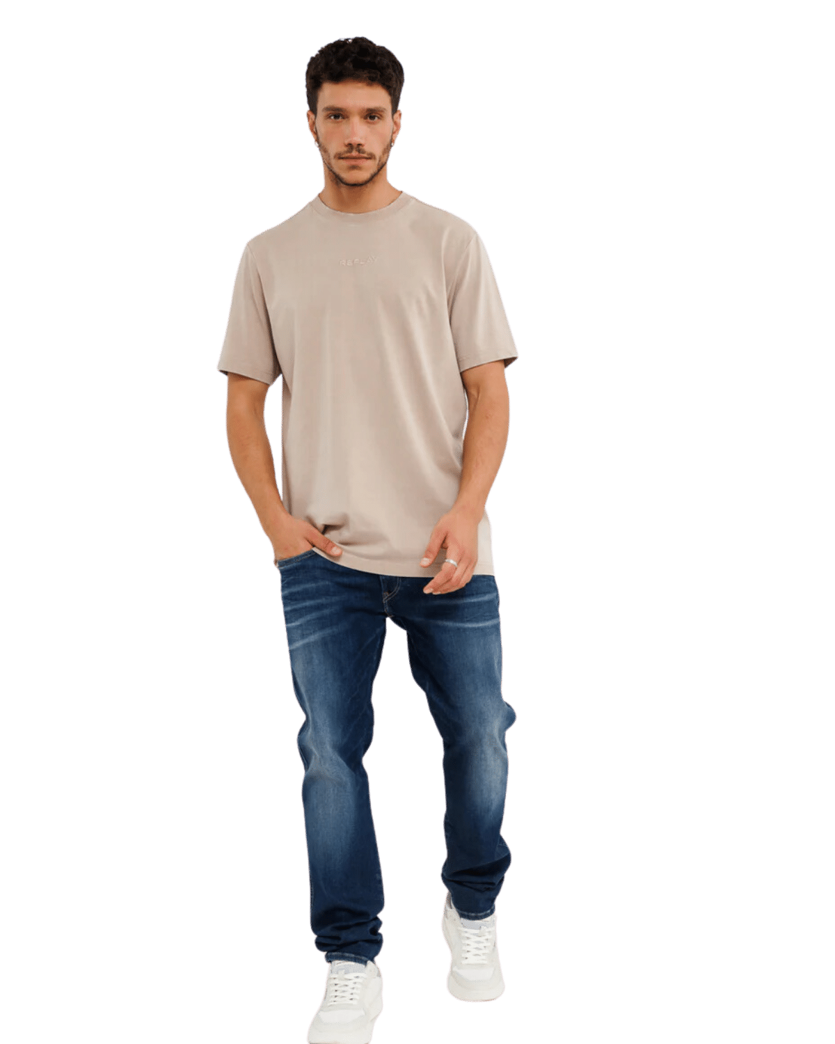 טי שירט אוברסייז קצרה עם כיתוב לגברים מבית ריפליי מעניקה מראה קלאסי ומודרני עם נגיעה ספורטיבית.