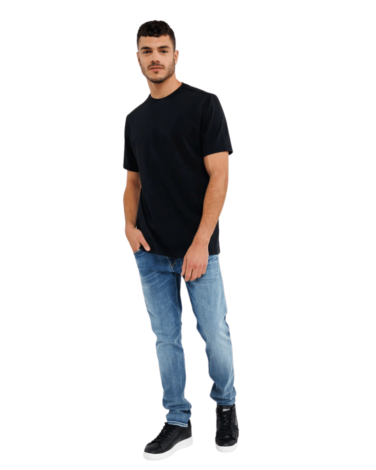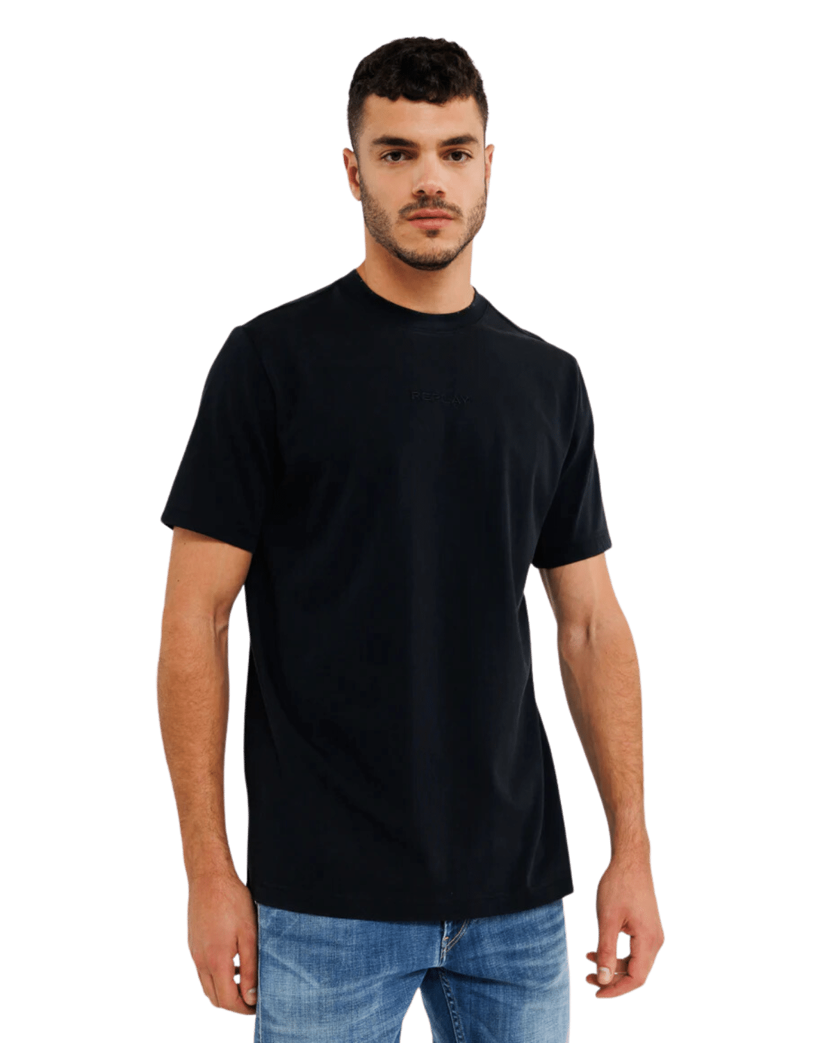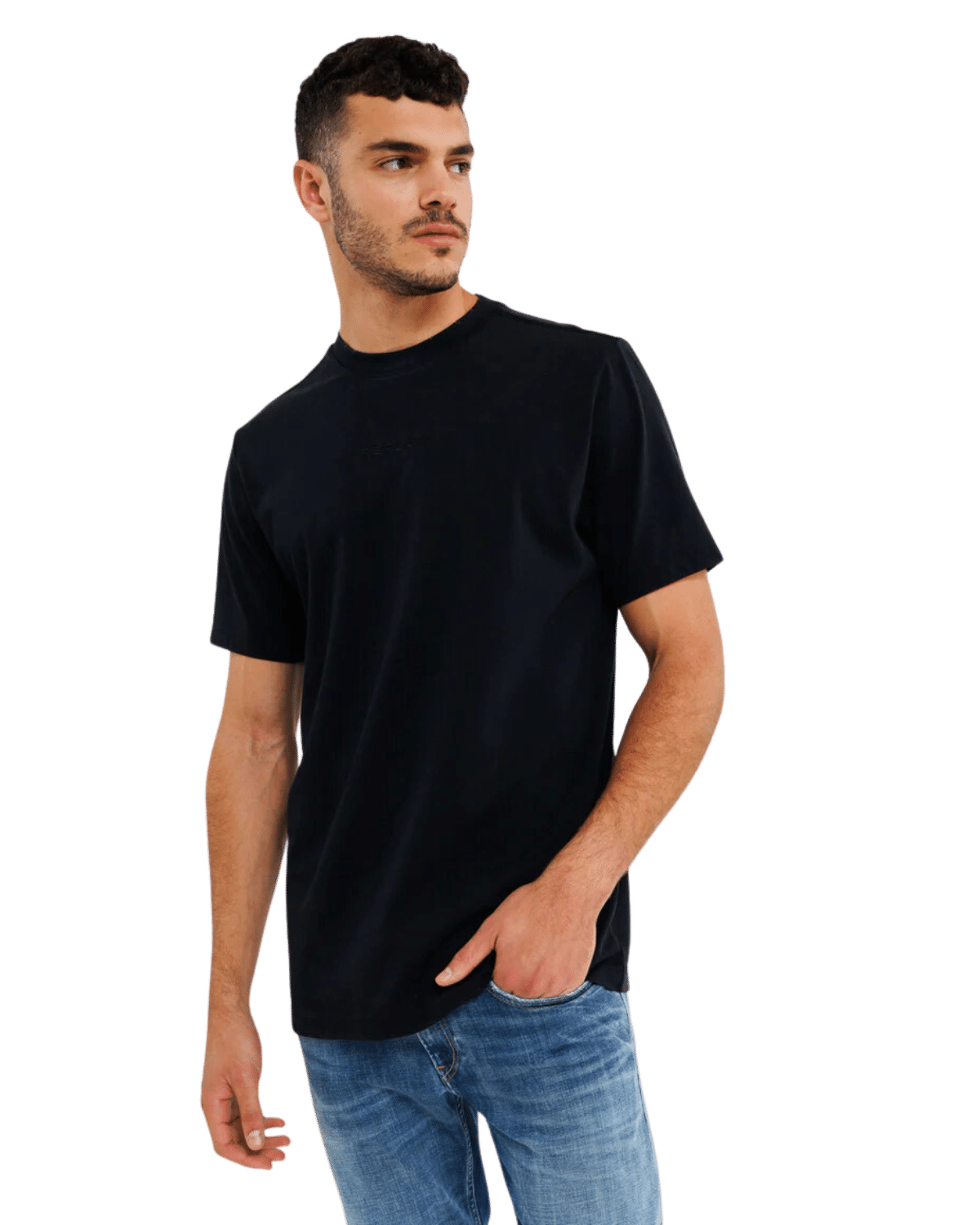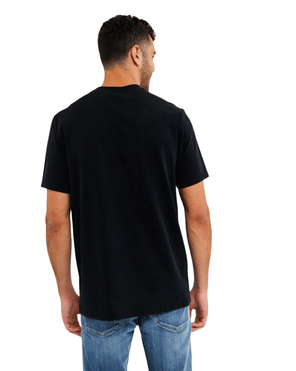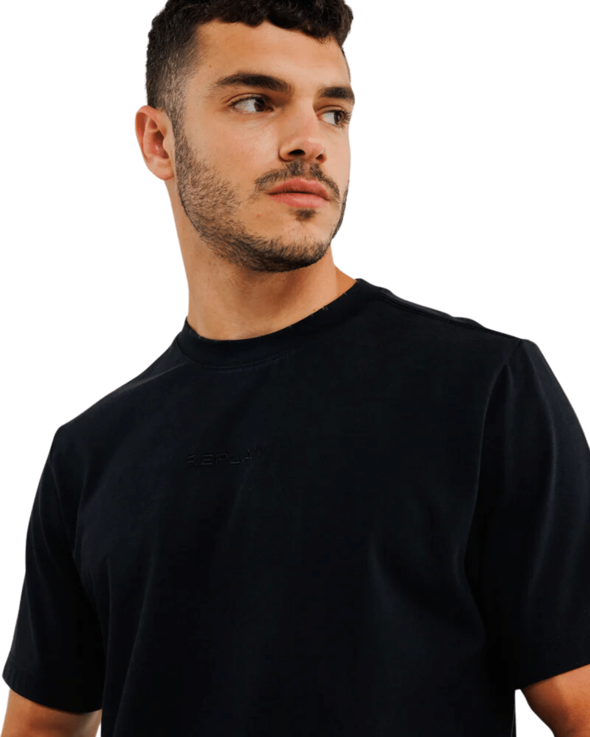 טי שירט אוברסייז קצרה בצבע שחור עם כיתוב לגברים מבית ריפליי מעניקה מראה קלאסי ומודרני עם נגיעה ספורטיבית.