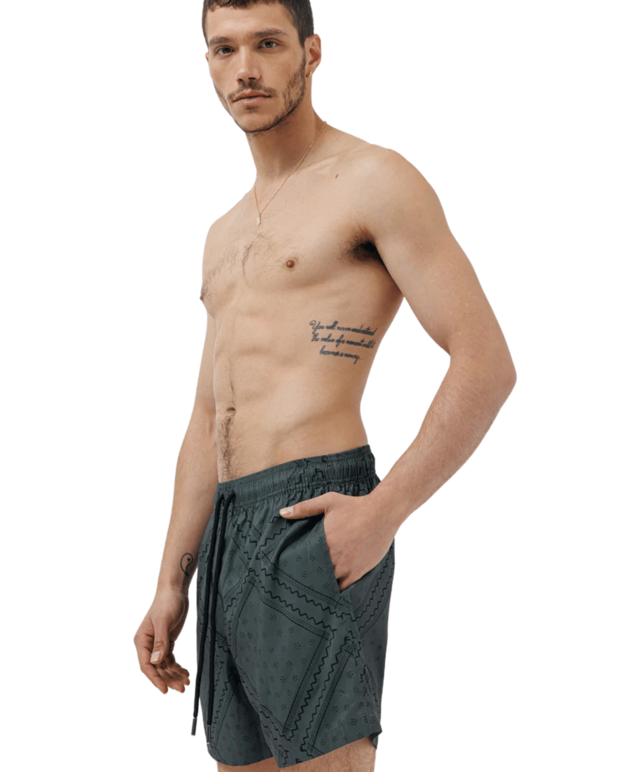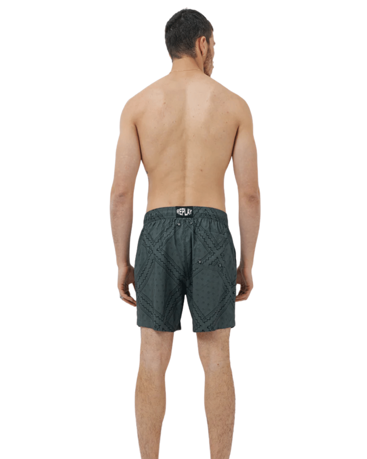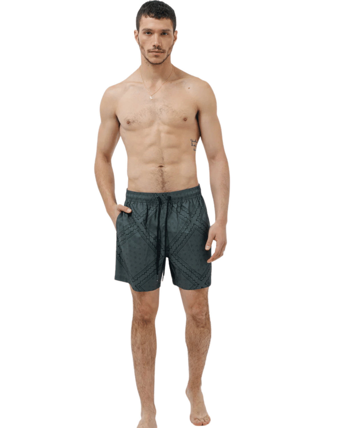 שורט ים לגברים בצבע אפור כהה עם דפוס שחור ייחודי, בעיצוב שמשלב קלילות קייצית עם ניחוח איטלקי יוקרתי.