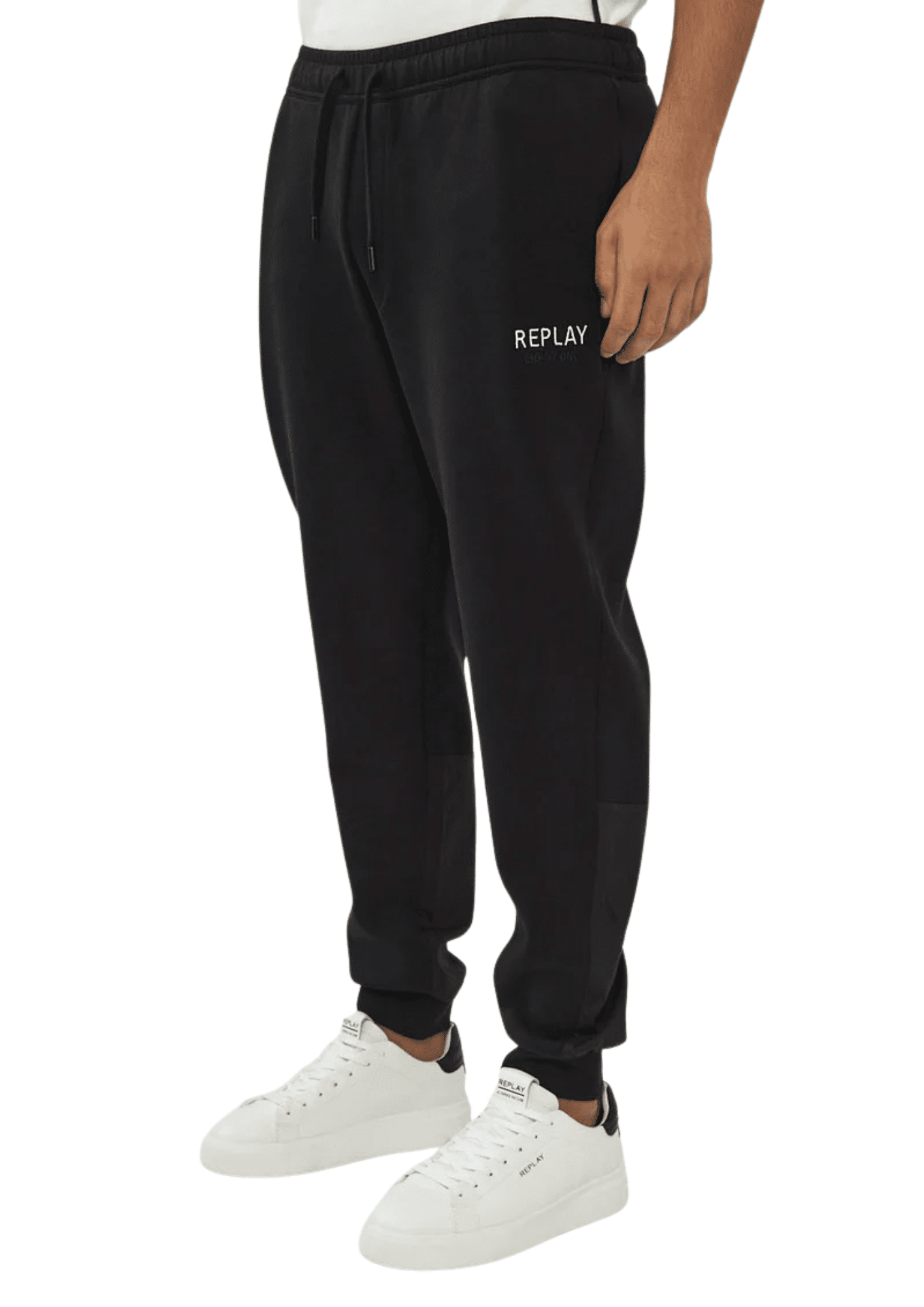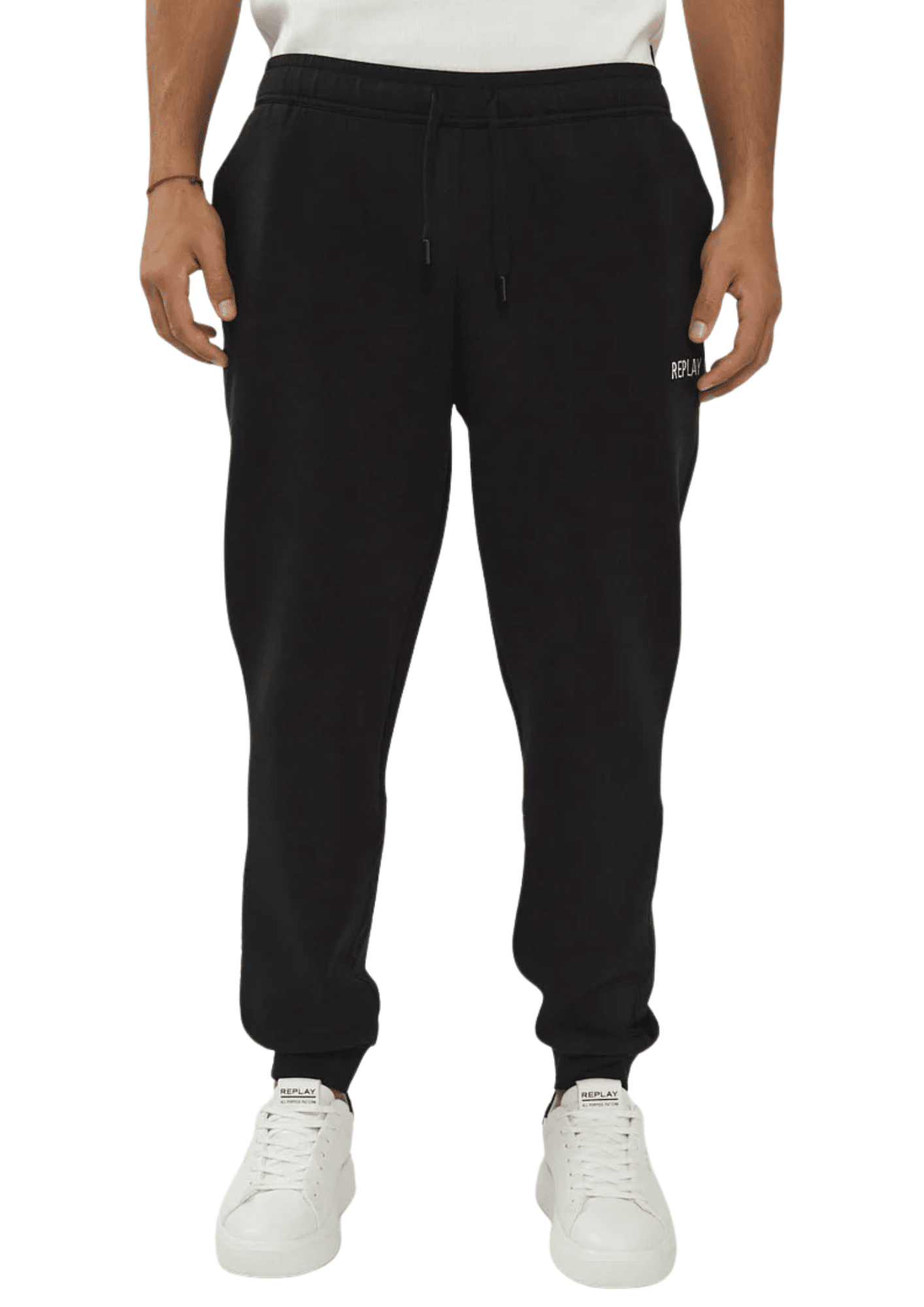 מכנסי ג’וגר שחורים לגברים מבית Replay Jeans, פריט יום-יומי קלאסי עם מראה עדכני ונוחות גבוהה.