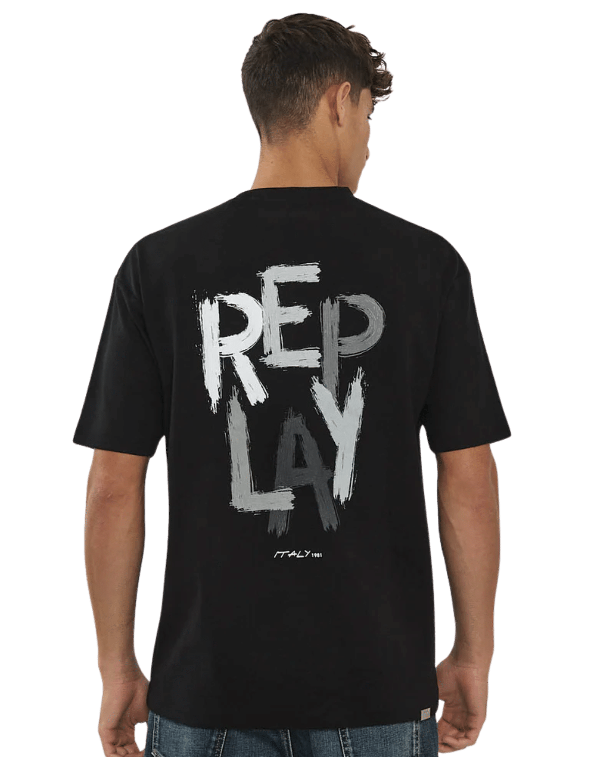 טי-שירט אוברסייז לגברים בצבע שחור מבית Replay, עשויה בד כותנה איכותי ונעים למגע.