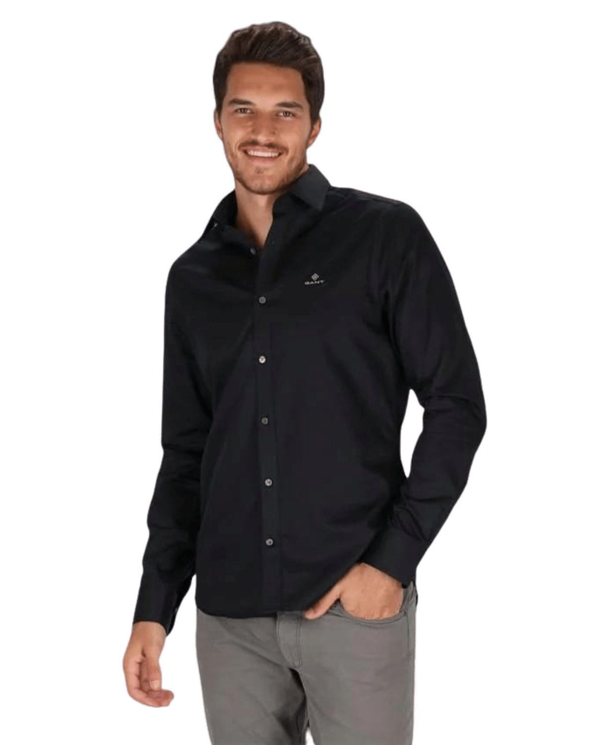 חולצה מכופתרת שחורה SATEEN SLIM TOWN
