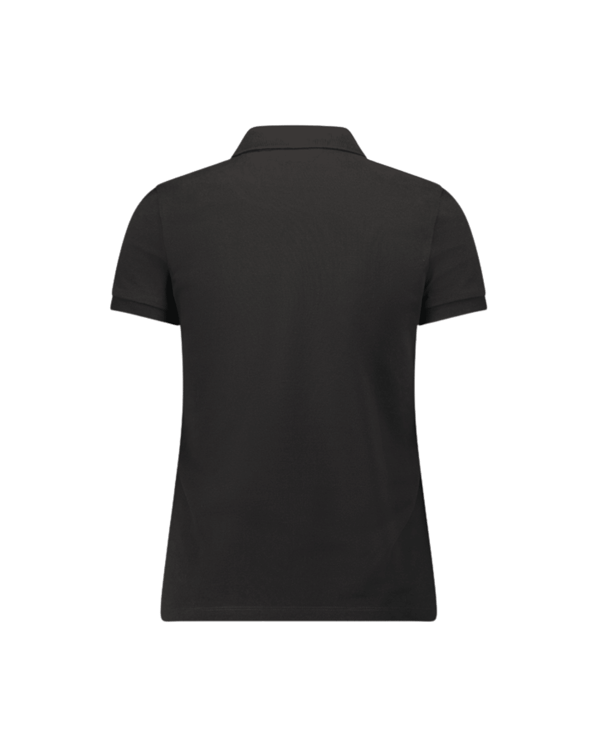 חולצת פולו שחורה לנשים, המשלבת בין מראה ספורטיבי יוקרתי לאלגנטיות קלילה.