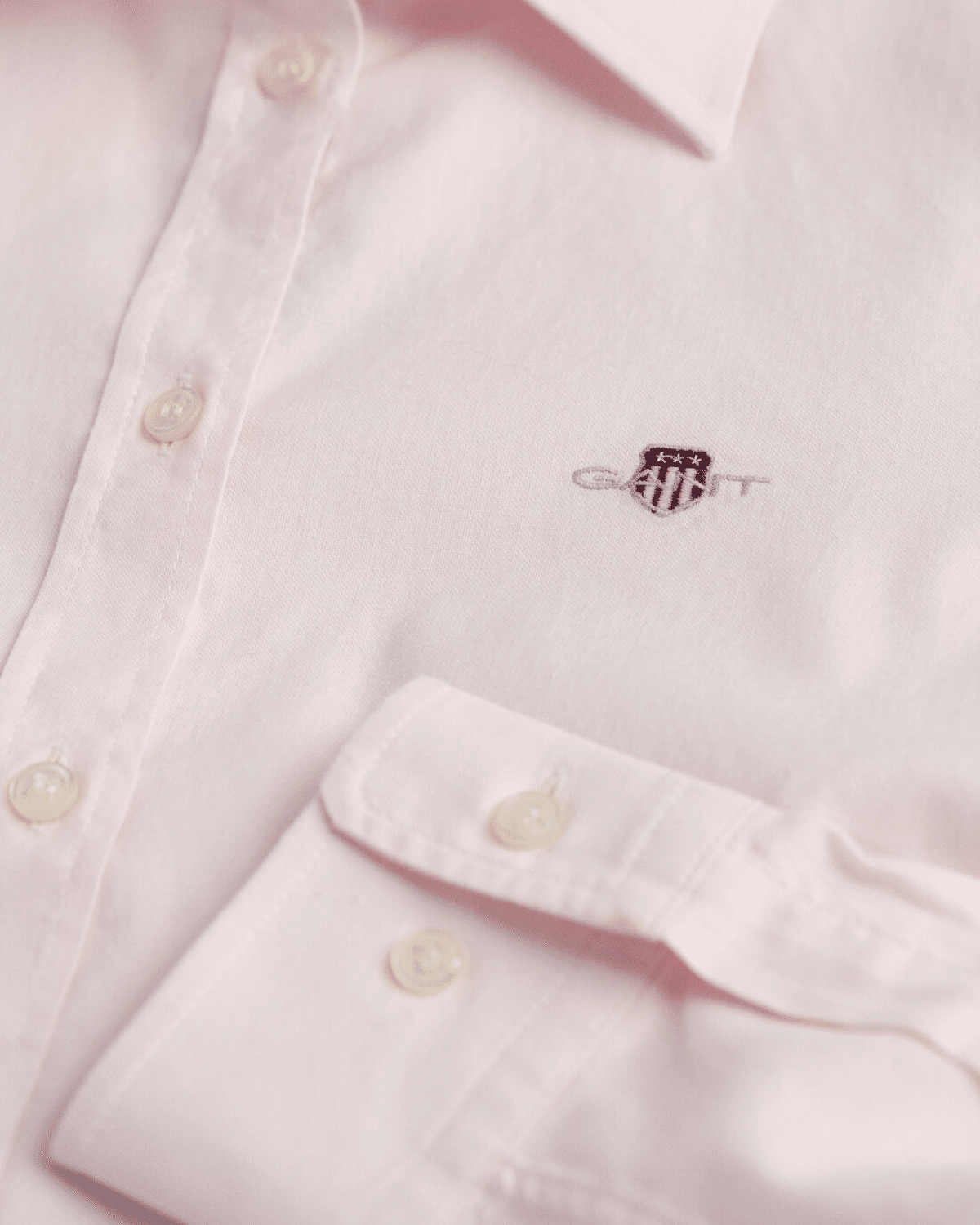 החולצה כוללת זוהי חולצה בעלת גזרה מחמיאה, צווארון מחודד, חלק תחתון מעוגל, הלולאה האופיינית של GANT בחלק האחורי וסמל מגן GANT האייקוני רקום על החזה.