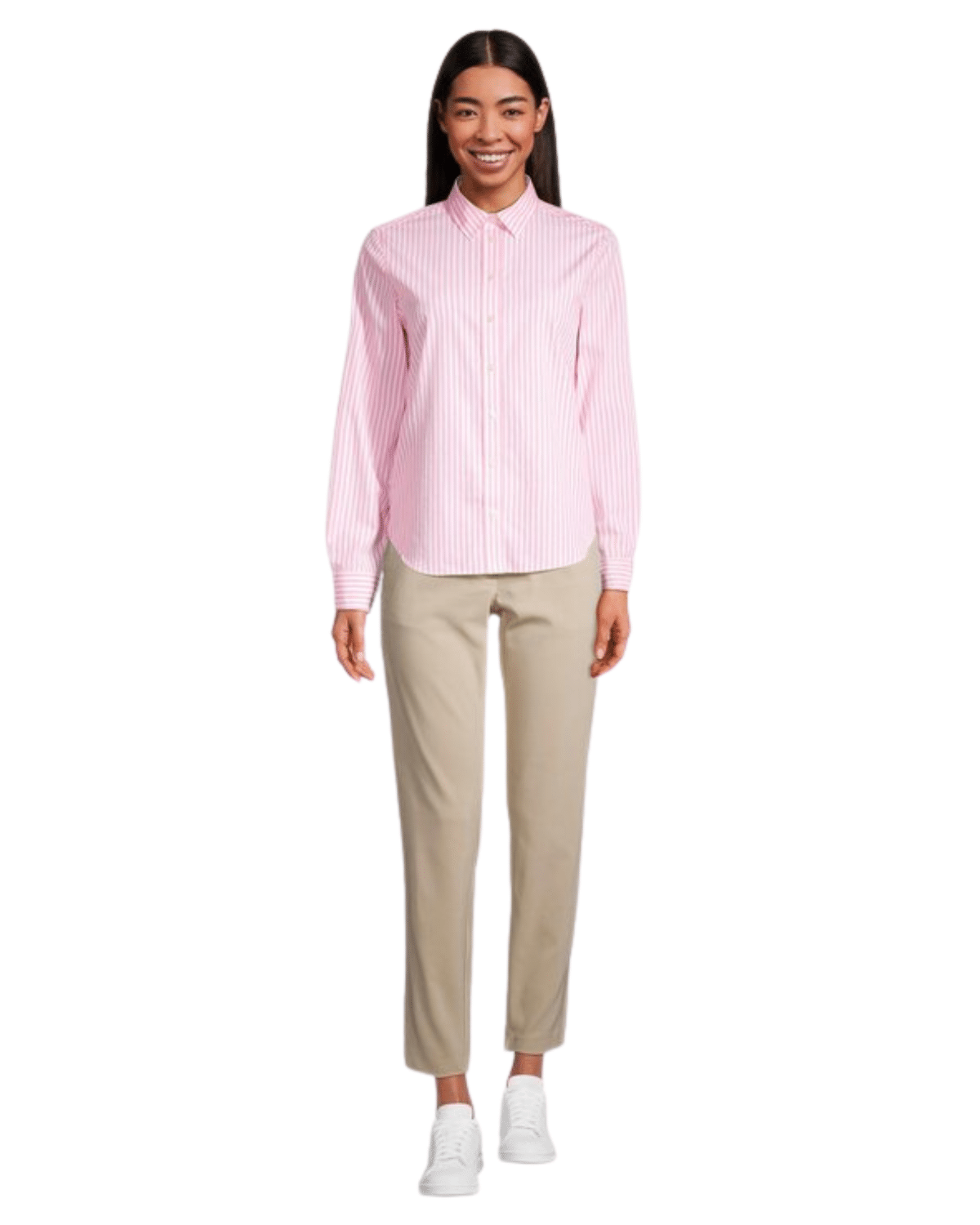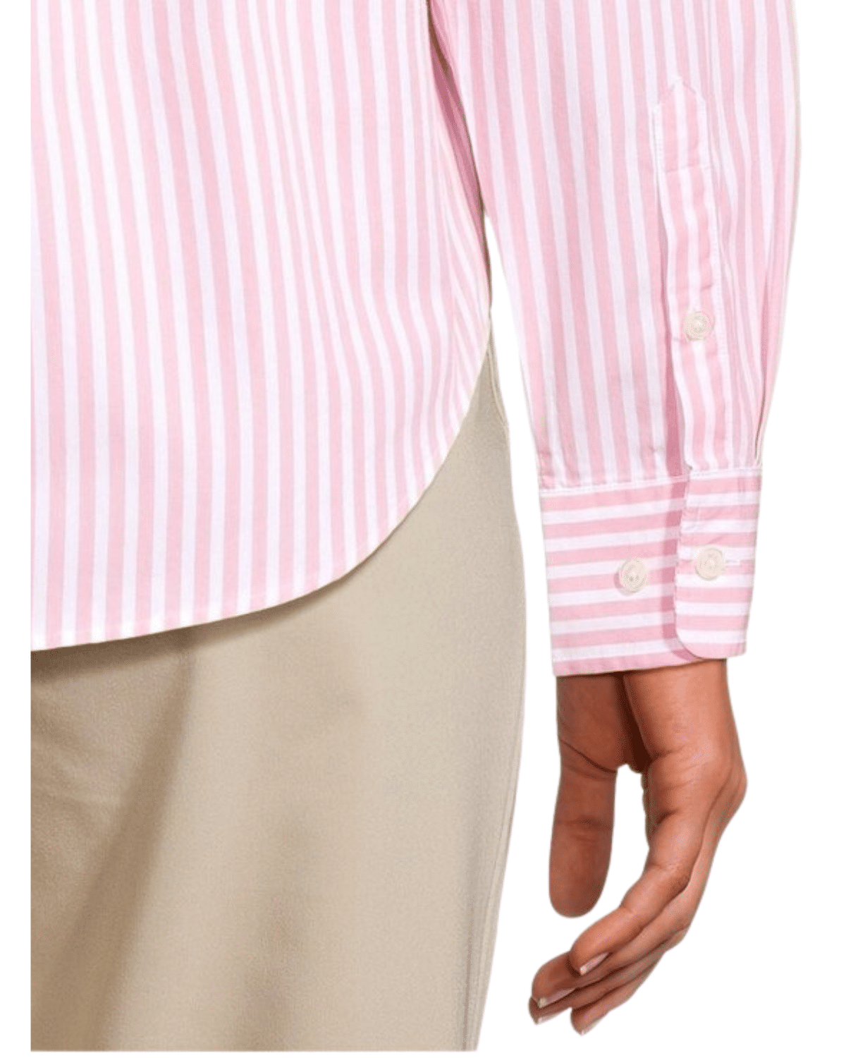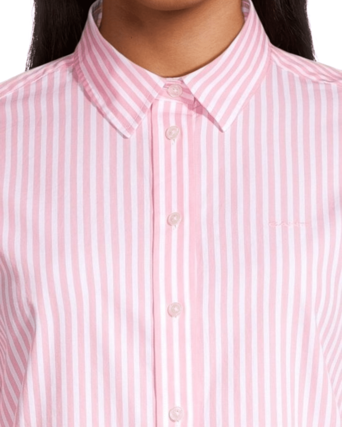 חולצה מכופתרת לנשים בצבע ורוד בהיר עם פסים בצבע לבן, המשלבת עיצוב נשי אלגנטי עם נוחות יומיומית ורמת גימור גבוהה.