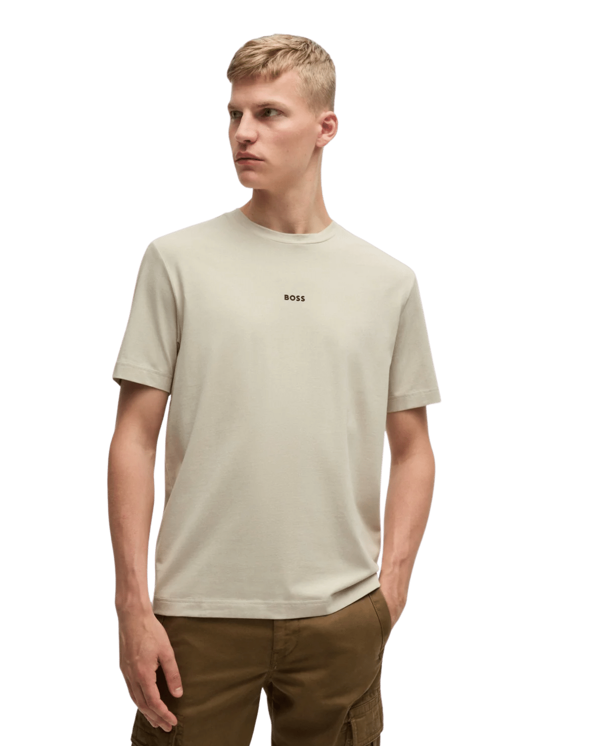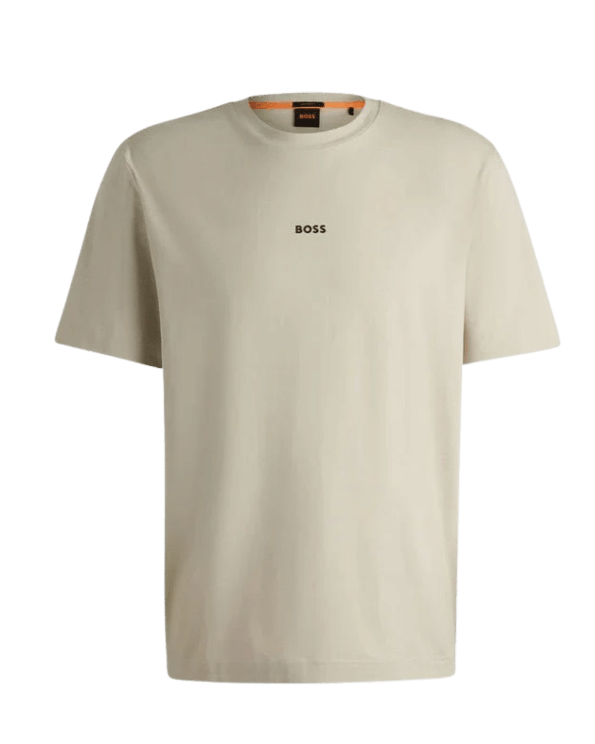 טי שירט מעוצבת מבית המותג HUGO BOSS, עם לוגו סמלי על החזית שמדגיש את המותג האייקוני.