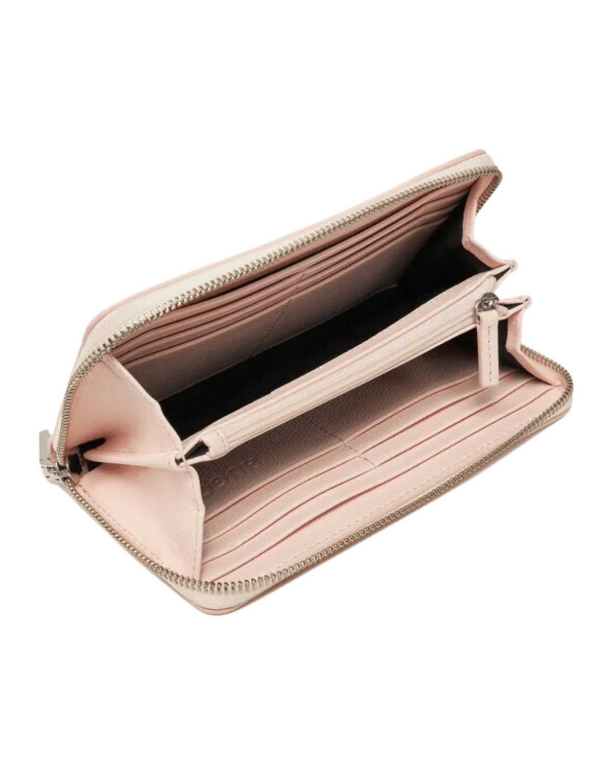 הארנק כולל מספר תאים לכרטיסי אשראי תא למטבעות עם רוכסן ותא לשטרות, העיצוב הנקי והצבע הוורוד העדין מוסיפים למראה היוקרתי של הארנק, המתאים לשימוש יומיומי או לאירועים מיוחדים.