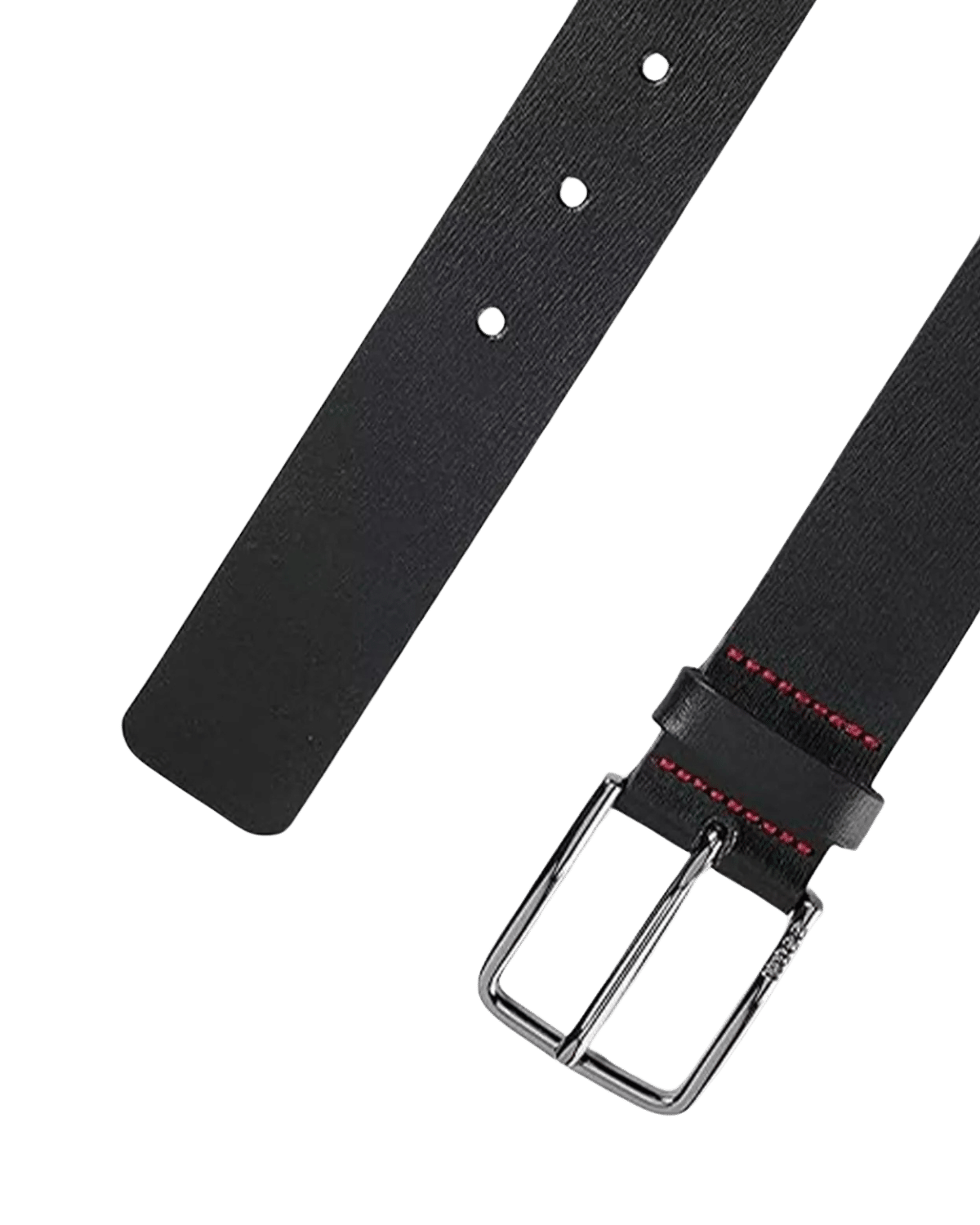 חגורה בעיצוב בית האופנה האיטלקי Hugo Boss העשויה מעור משובח בצבע שחור.