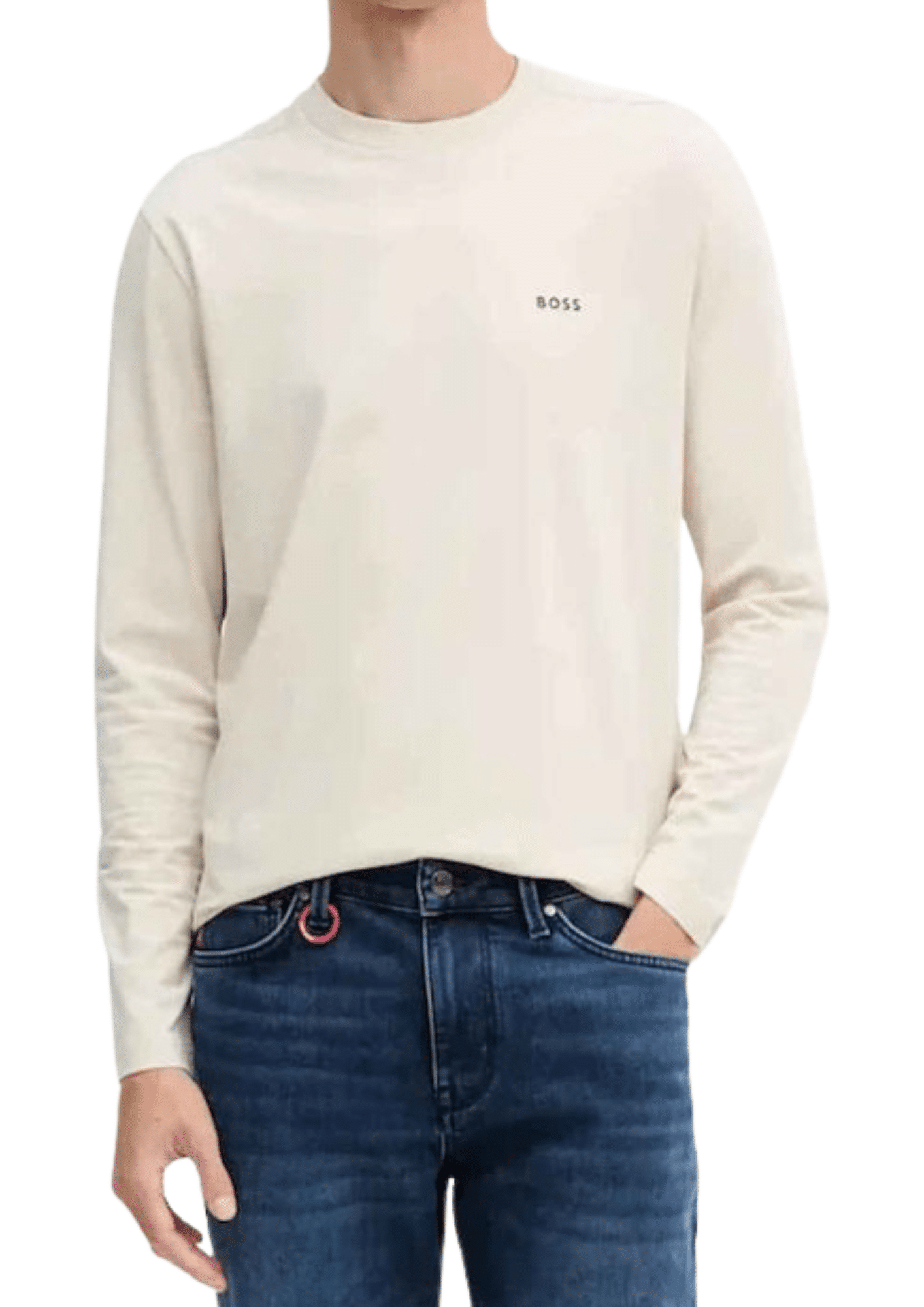 חולצת שרוול ארוך לגברים מבית BOSS, בגוון לבן “Open White”.