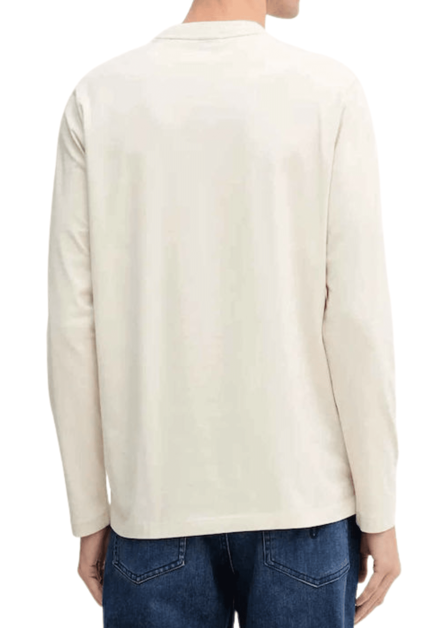 החולצה בגזרה רגילה (Regular Fit) עם צווארון עגול ושרוולים ארוכים, פריט בסיסי איכותי במראה מינימלי שמתאים לקז’ואל יום-יומי.
