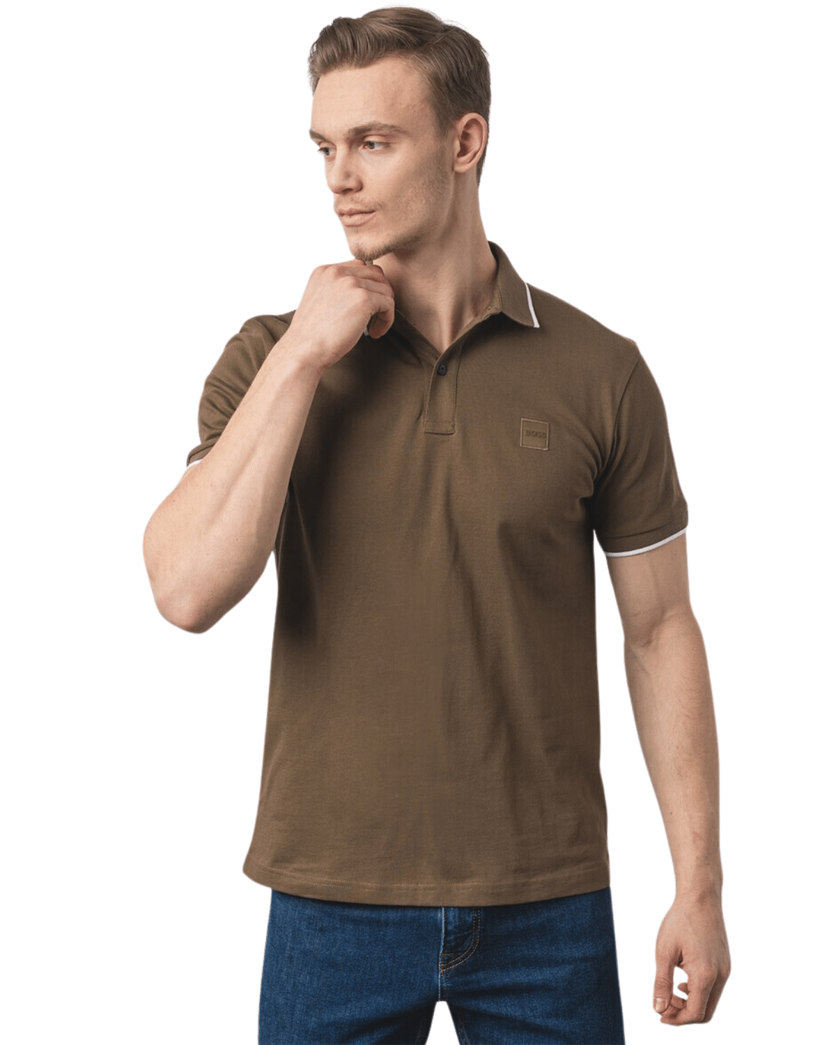 חולצת פולו אופנתית לגברים  בצבע חאקי כהה ובגזרה רגילה (Regular Fit) מחמיאה ונוחה, עשויה מכותנה איכותית המעניקה תחושה רכה ונעימה לאורך כל היום.