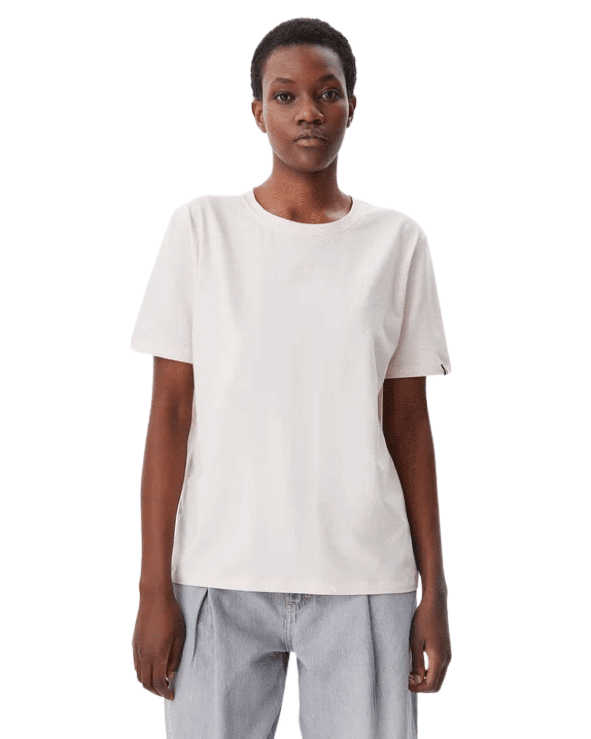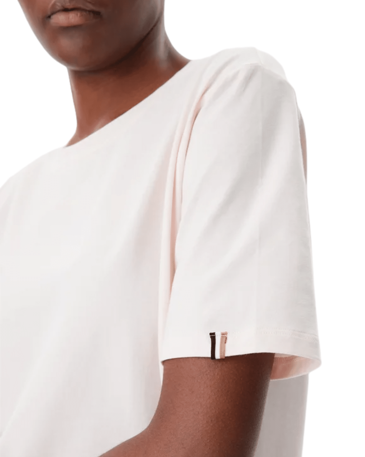 חולצה קצרה לנשים בעיצוב נקי וקלאסי, בגוון ורוד בהיר רך.