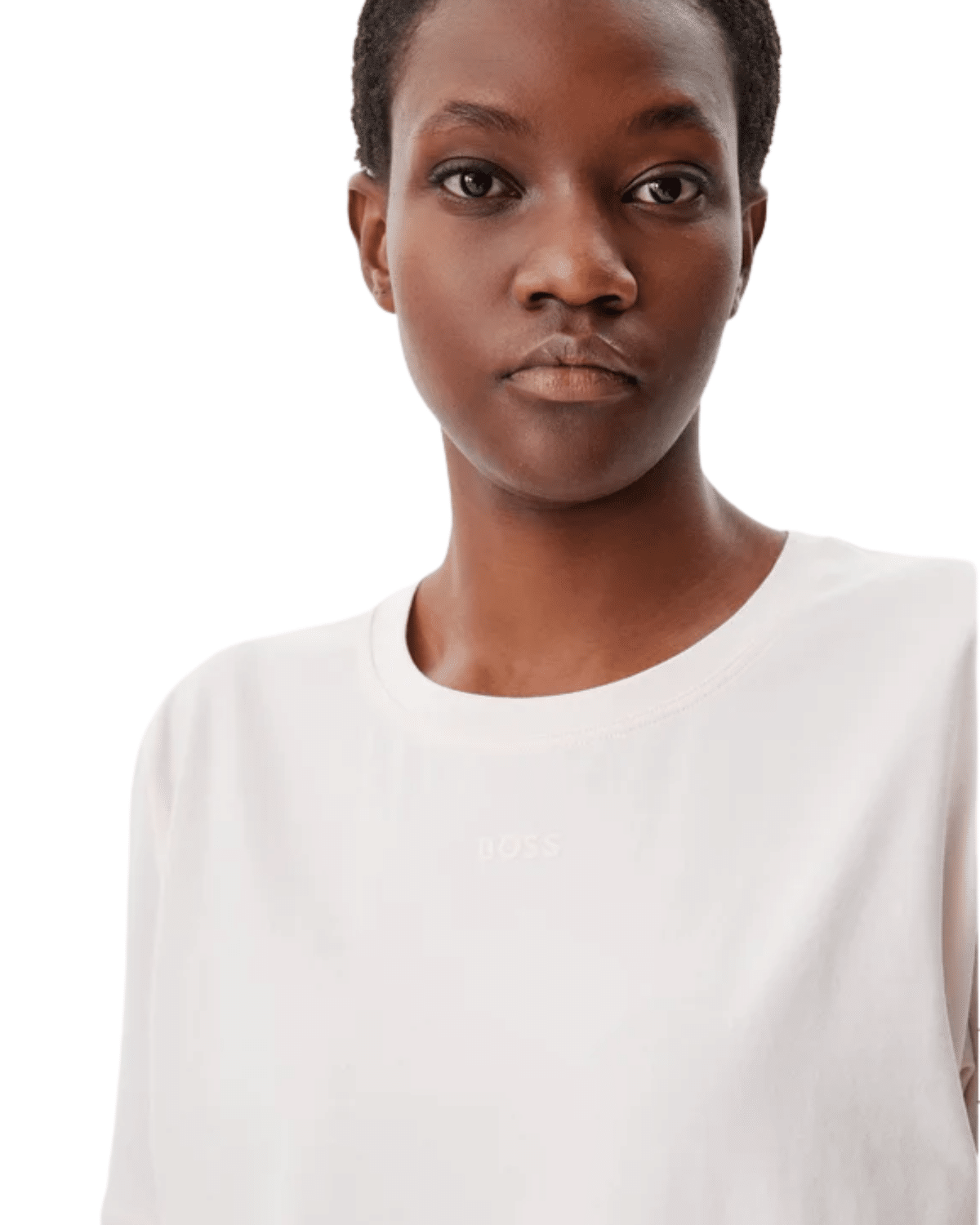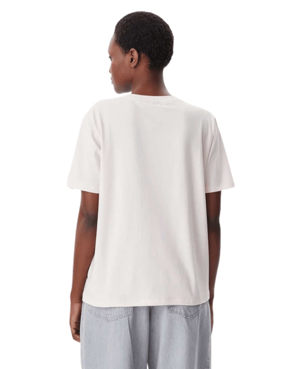 החולצה עם לוגו המותג מוטבע על החזה מקדימה, מתאימה לשילוב עם ג'ינס, חצאית או מכנסיים קצרים ליצירת מראה אופנתי ויומיומי.