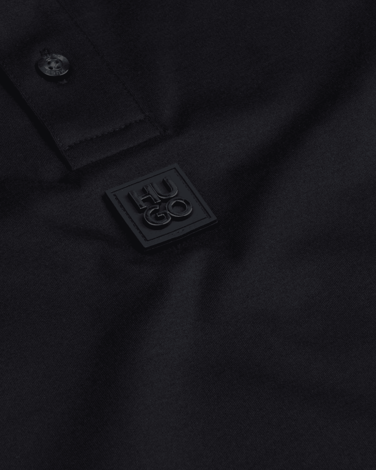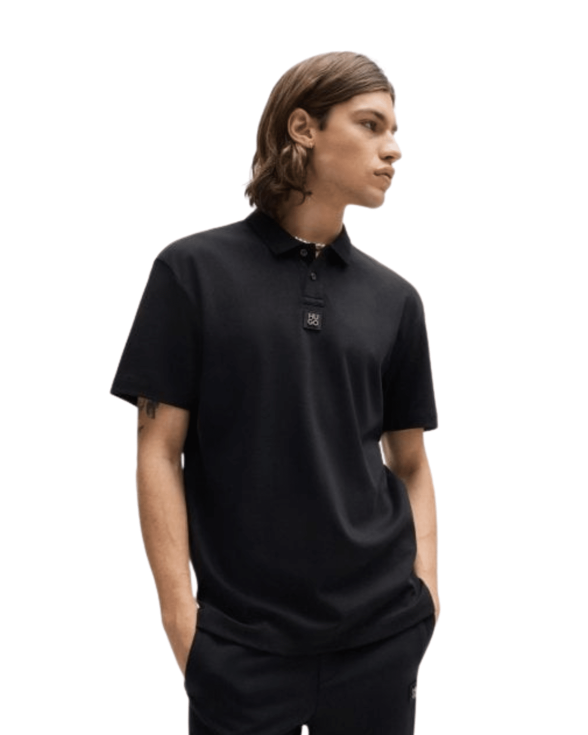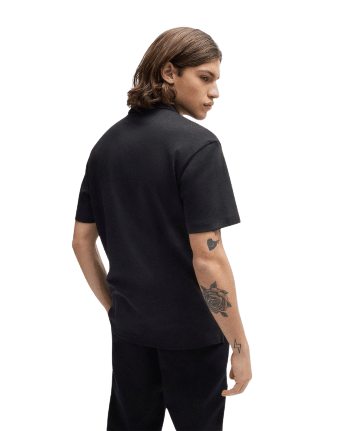 חולצת פולו קצרה לגברים מבית המותג Hugo Boss , בעיצוב אלגנטי וצבע שחור.