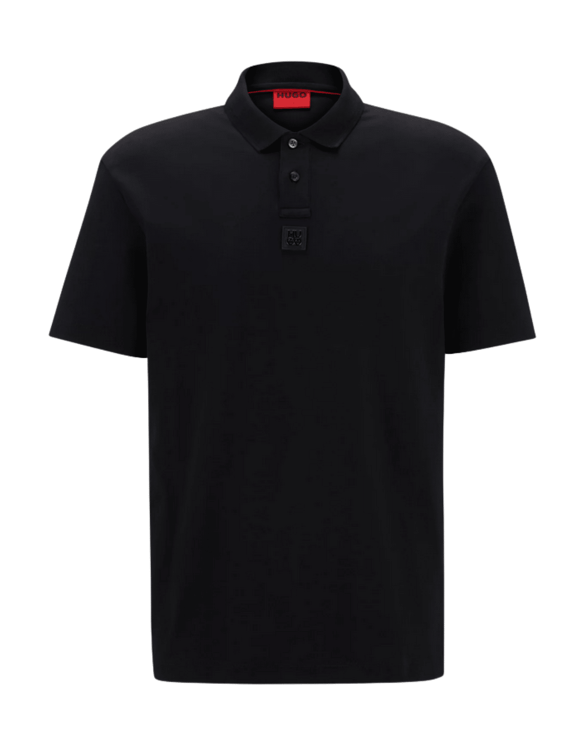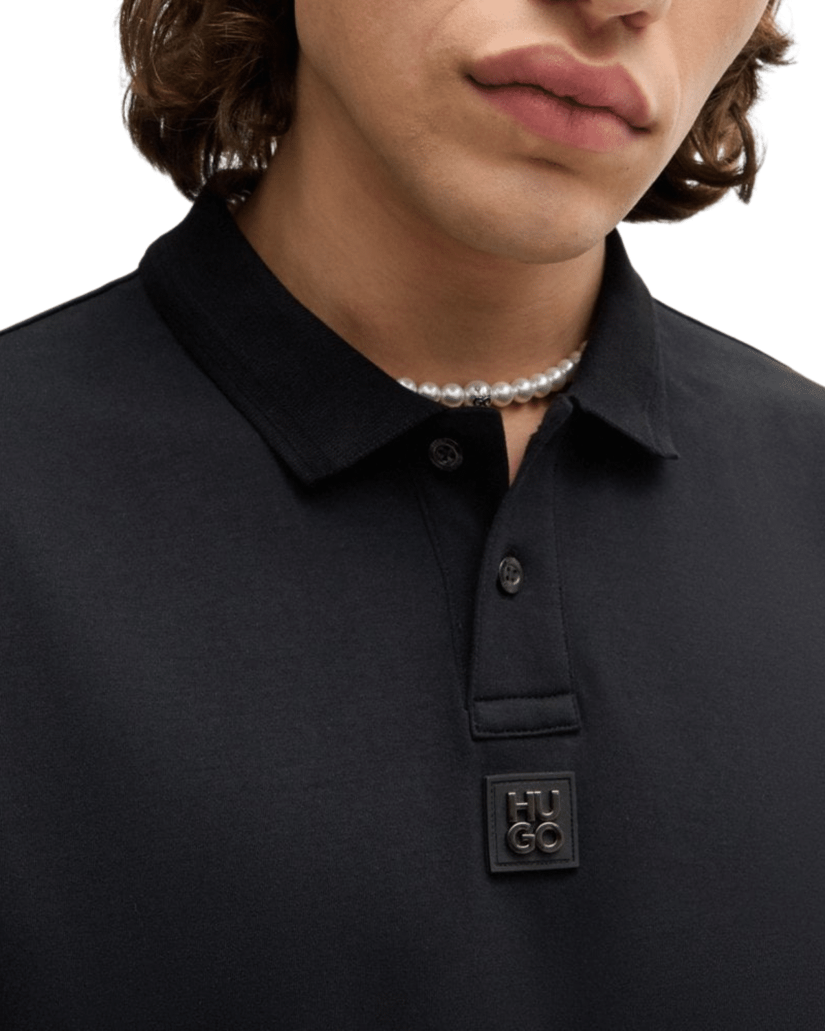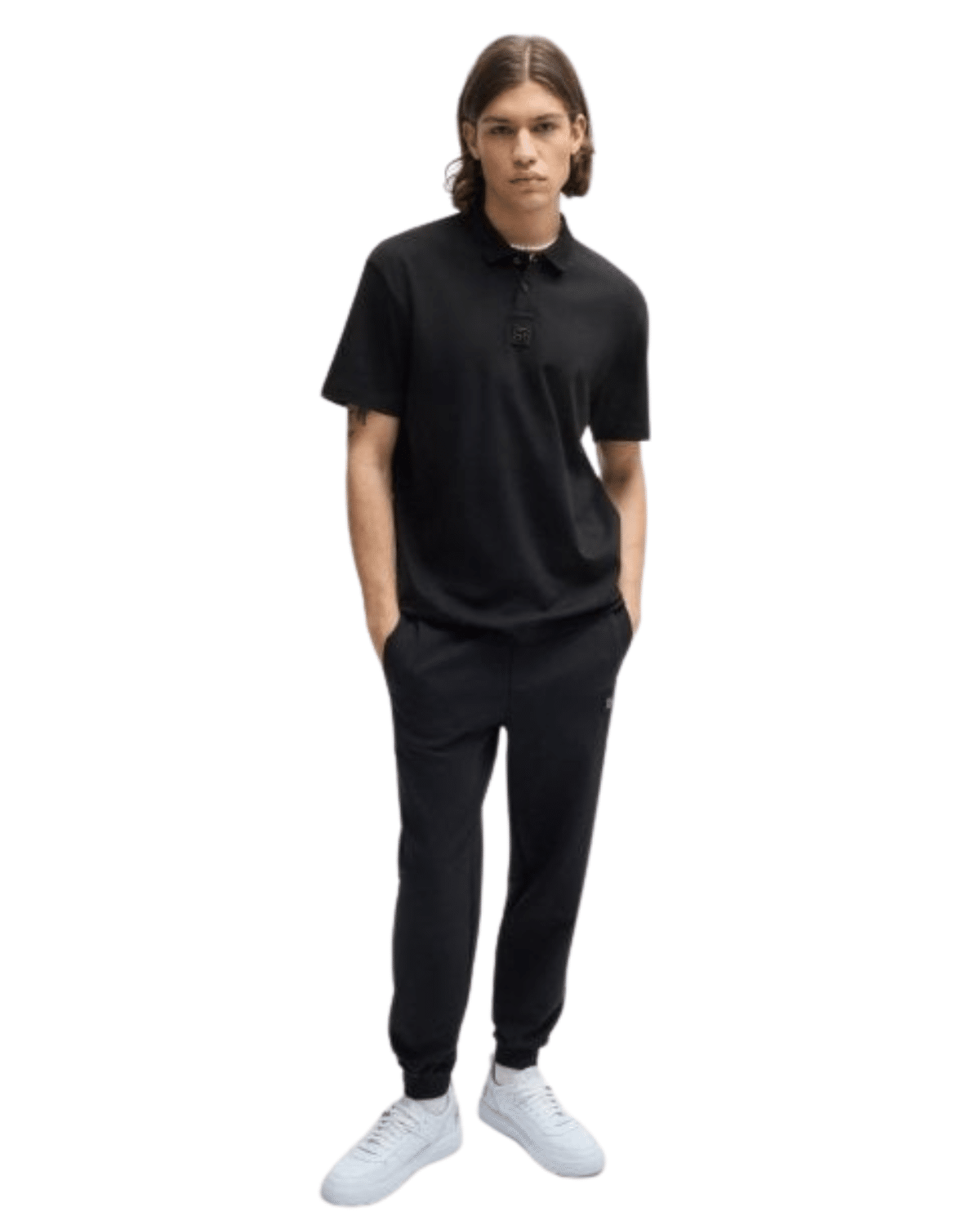 חולצת פולו קצרה לגברים מבית המותג Hugo Boss , בעיצוב אלגנטי וצבע שחור.