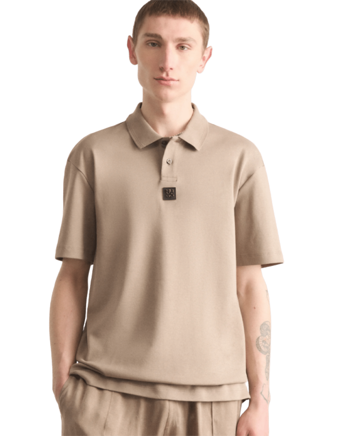 תבליט לוגו של המותג במרכז החזה, דבר המוסיף למראה היוקרתי של החולצה.