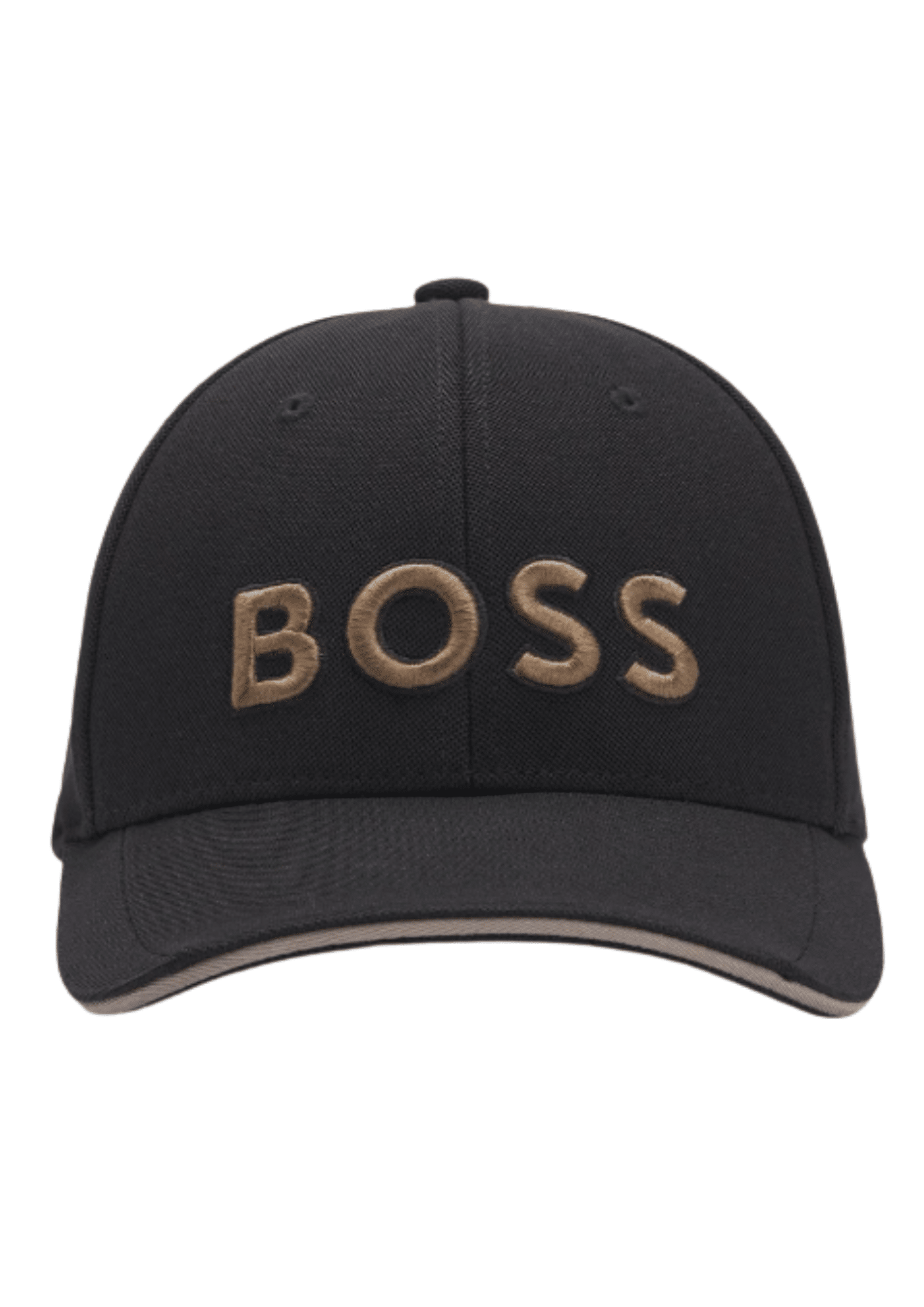 כובע מצחייה אופנתי לגברים מבית BOSS, עם לוגו רקום וסגנון קלאסי-עכשווי בצבע שחור עם פרטים זהב.