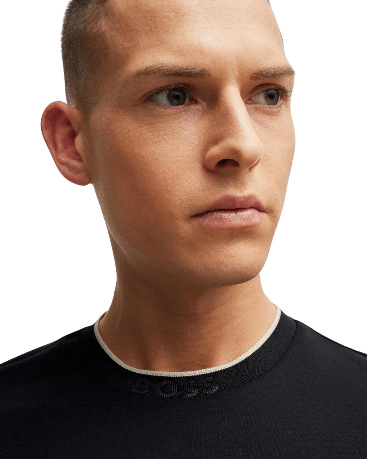 חולצת טריקו ייחודית עם מיתוג מוטבע על רצועת הצווארון של BOSS .