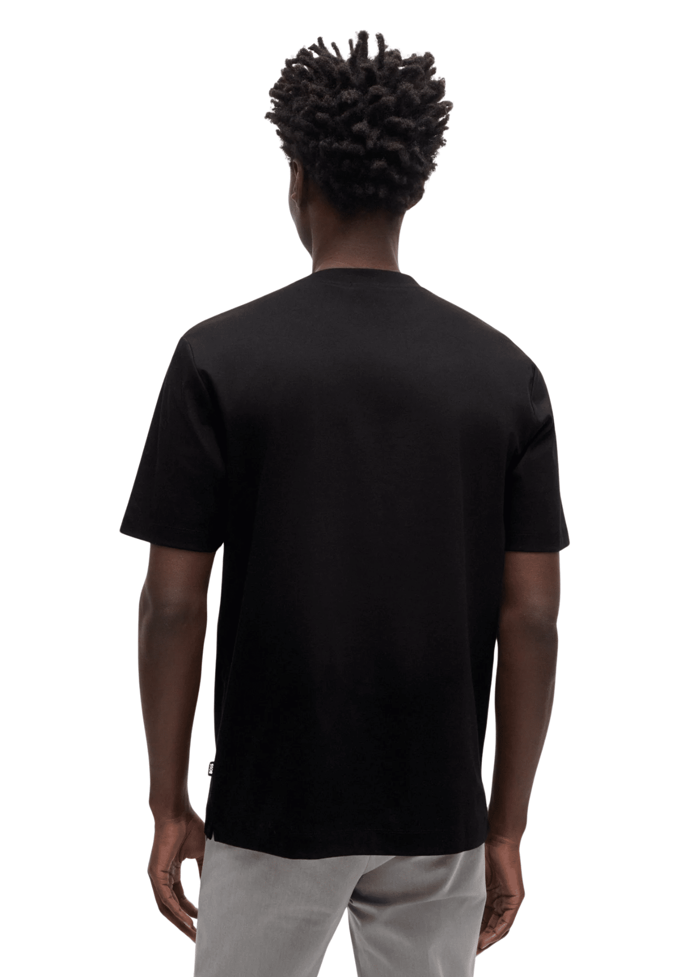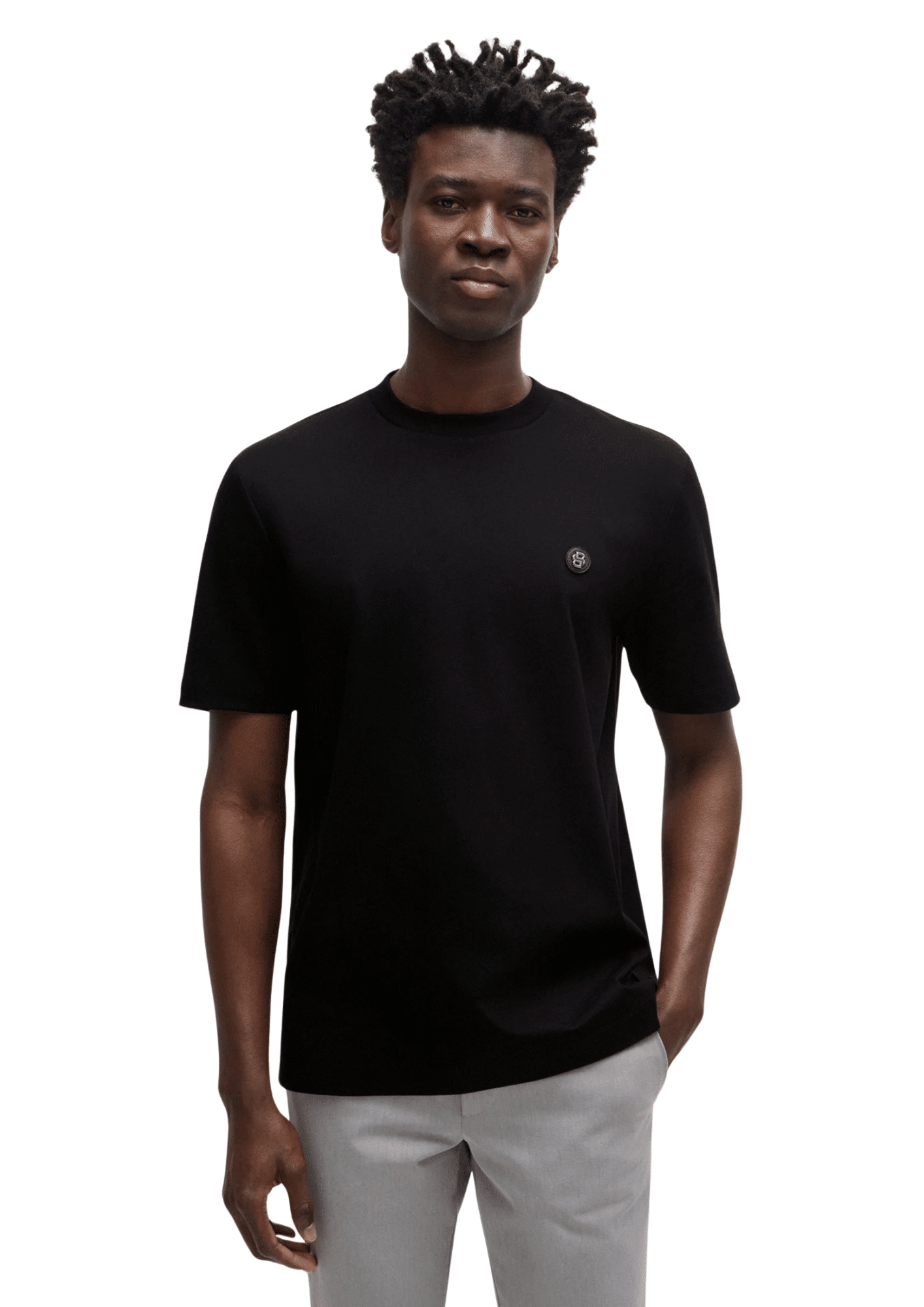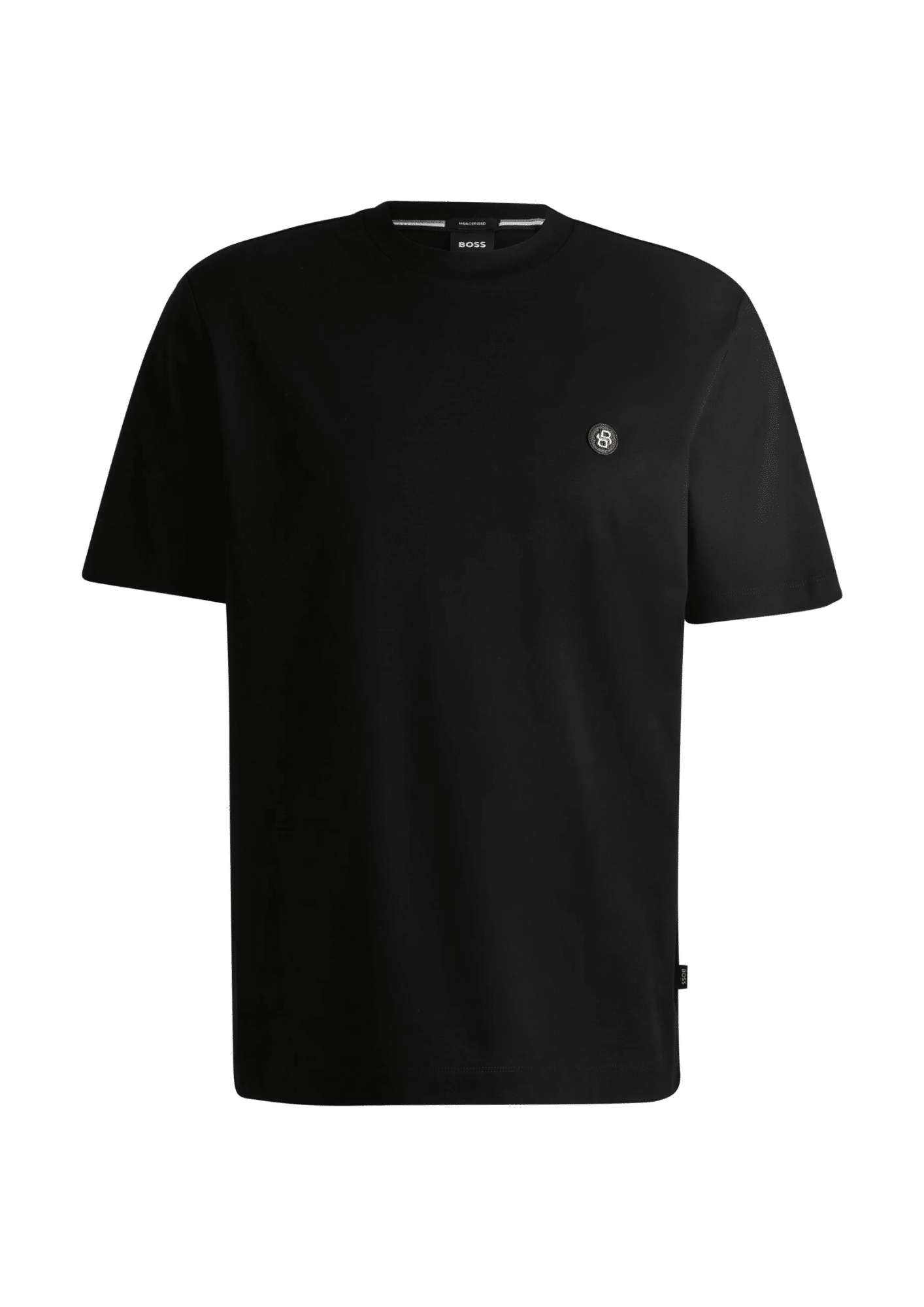 טי-שירט לגברים בעיצוב נקי ומדויק מבית BOSS בצבע שחור קלאסי, עם לוגו קטן ועדין בחזית למראה אלגנטי ומינימליסטי.