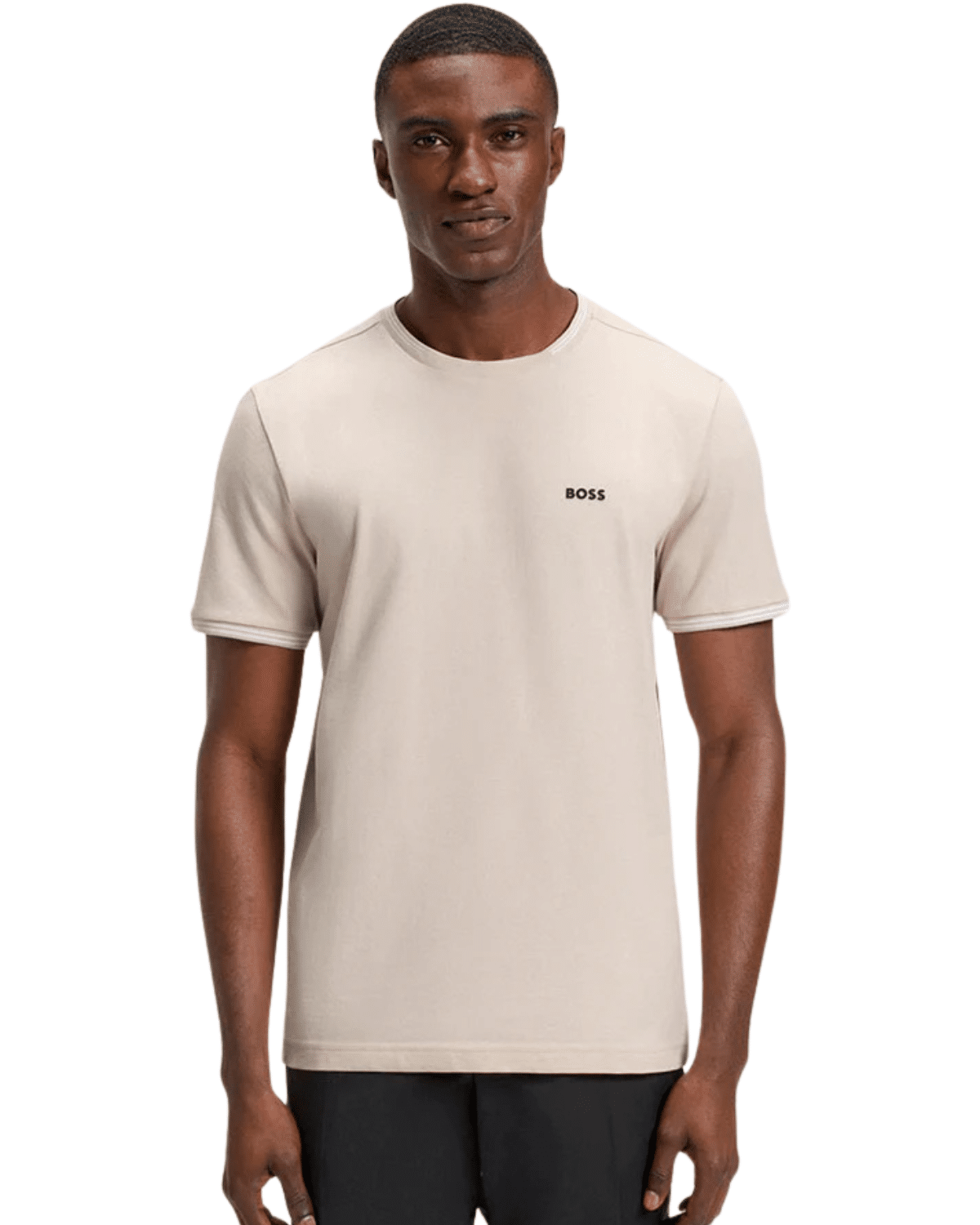 חולצת טי שירט לגברים בגוון בז' רך, צבע עדין ונעים שמעניק מראה מודרני, נקי ועל-זמני.