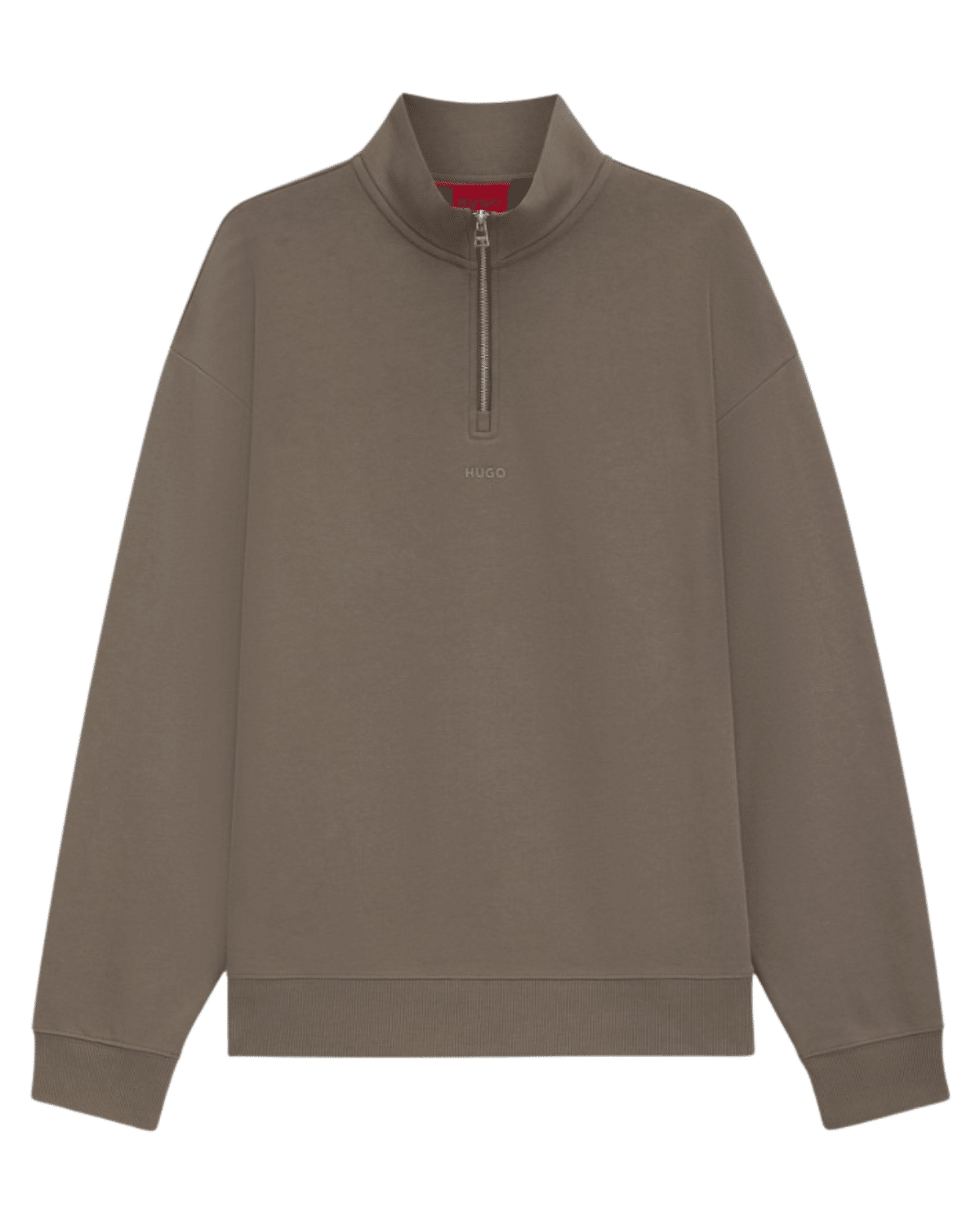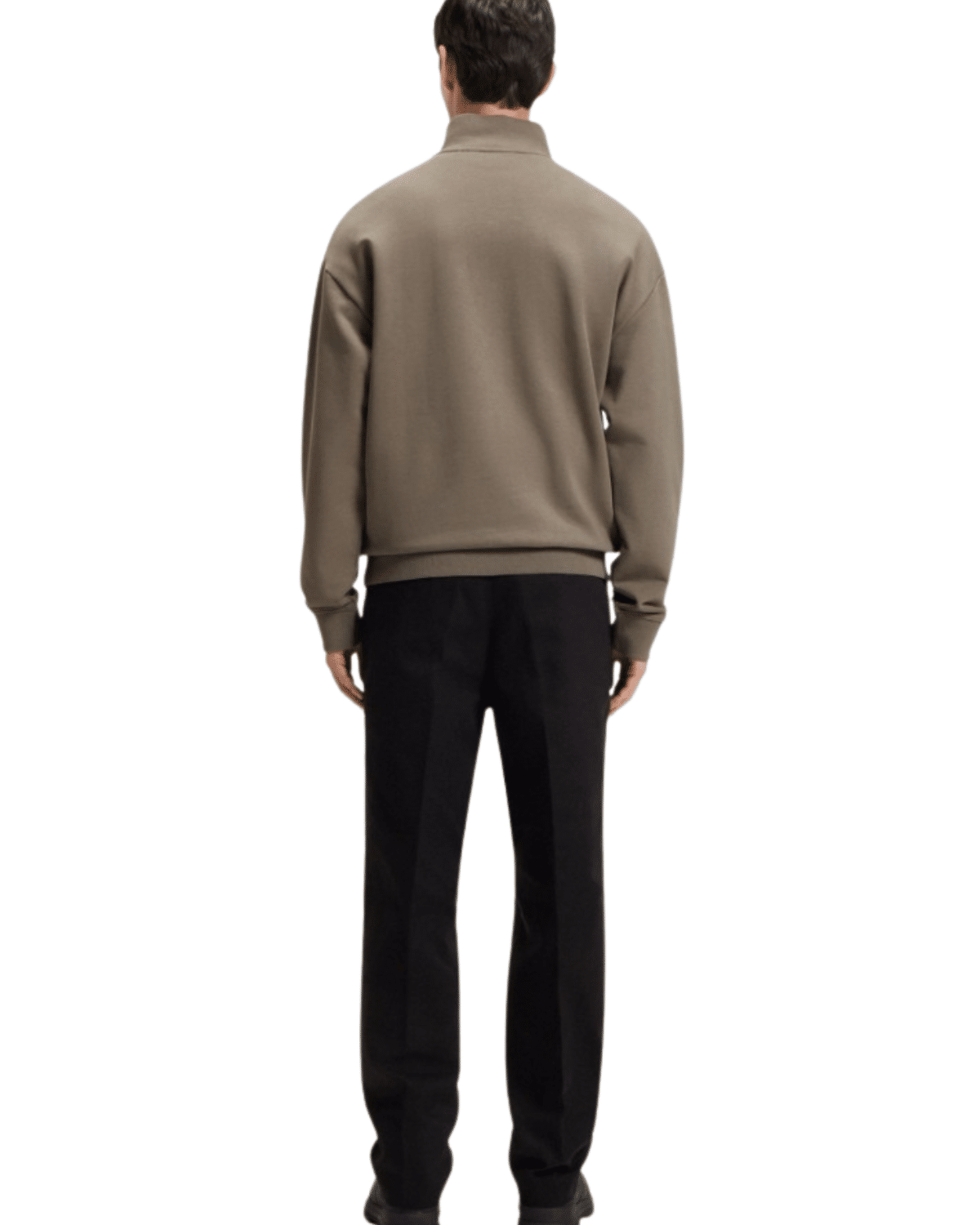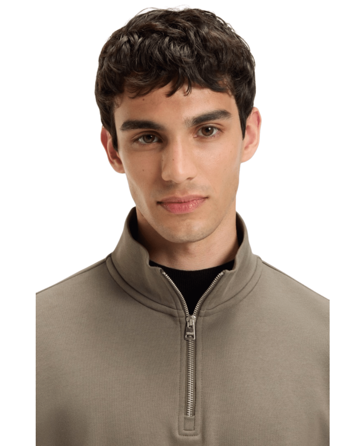 הסווטשירט בעל צווארון עמידה (Stand Collar) עם סגירת רוכסן חלקי, המאפשרת התאמה אישית של מידת הפתיחה.