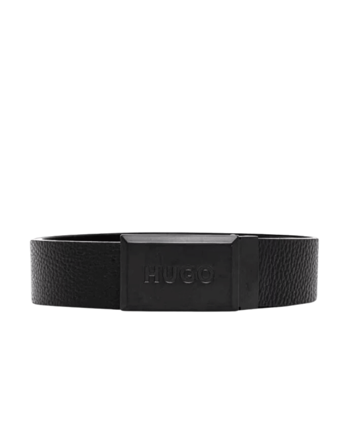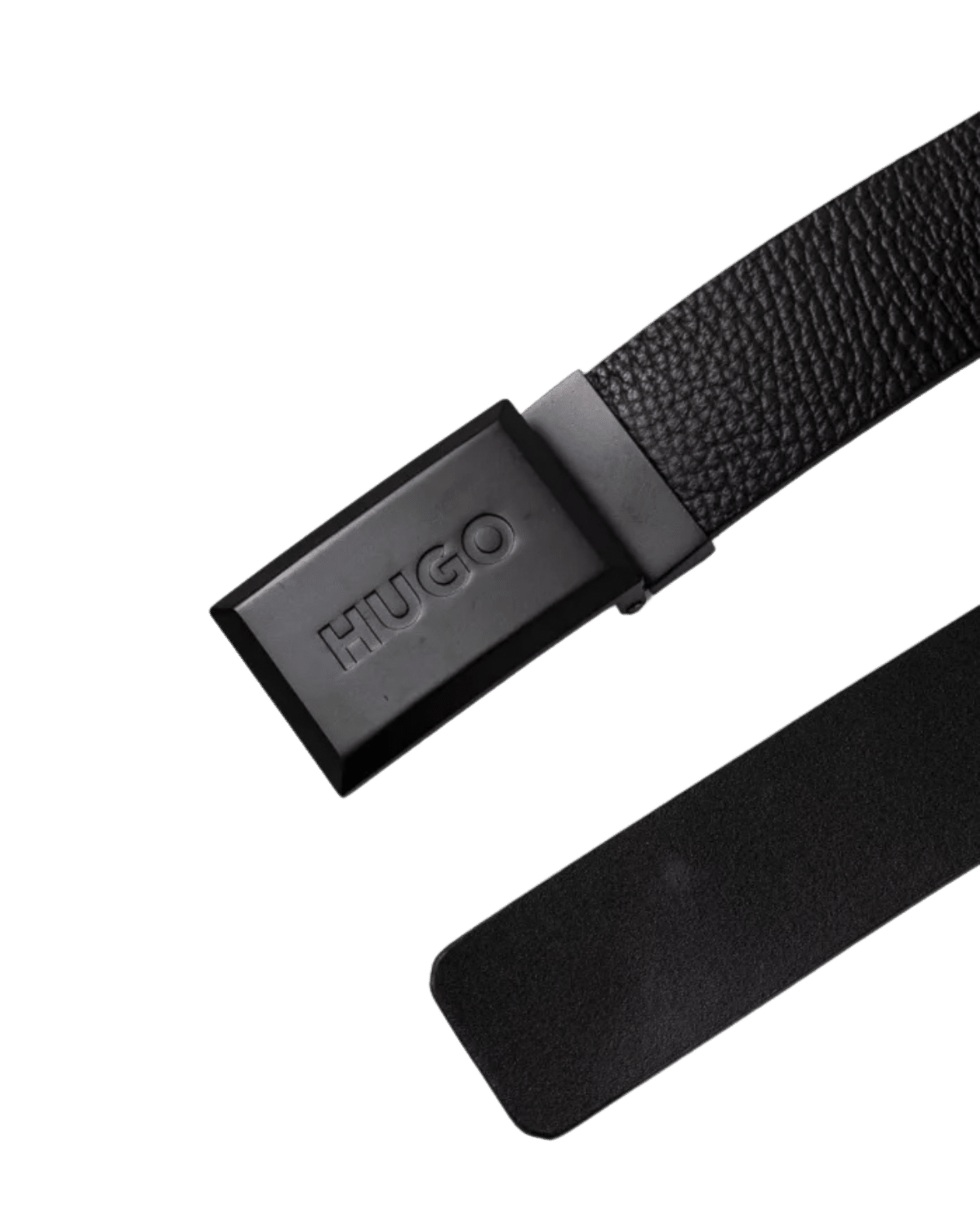 חגורה בעיצוב בית האופנה האיטלקי Hugo Boss העשויה מעור משובח בצבע שחור.