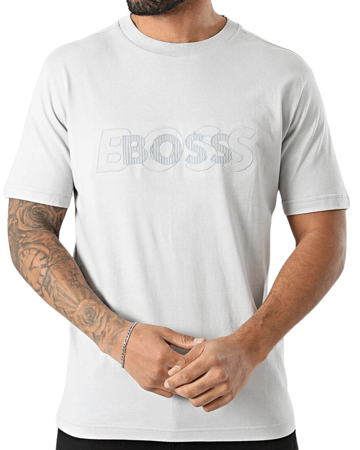 חולצת טי-שירט  קצרה לגברים מבית המותג היוקרתי הוגו בוס, בצבע לבן קלאסי.
