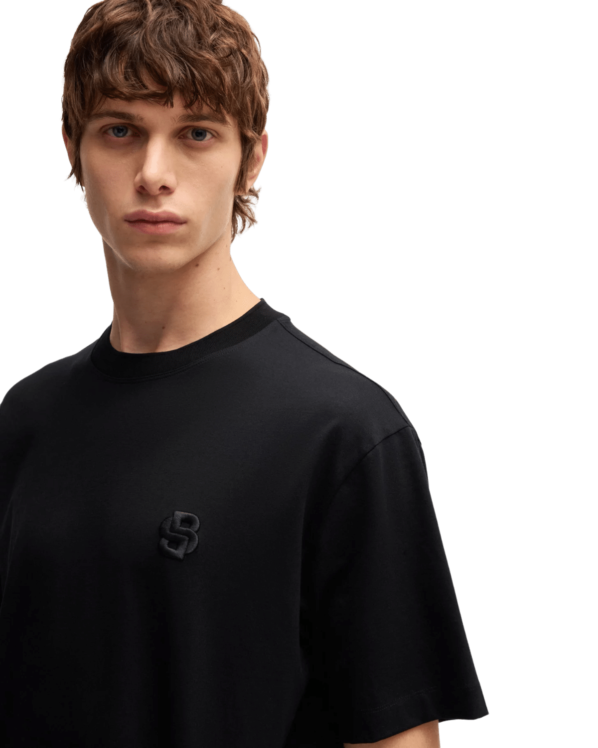 החולצה מעוצבת בגזרה רחבה (Relaxed Fit) לנוחות מרבית, עם צווארון עגול קלאסי, בחזית החולצה מופיע לוגו "Double B" רקום, המוסיף נופך אלגנטי לעיצוב הנקי.