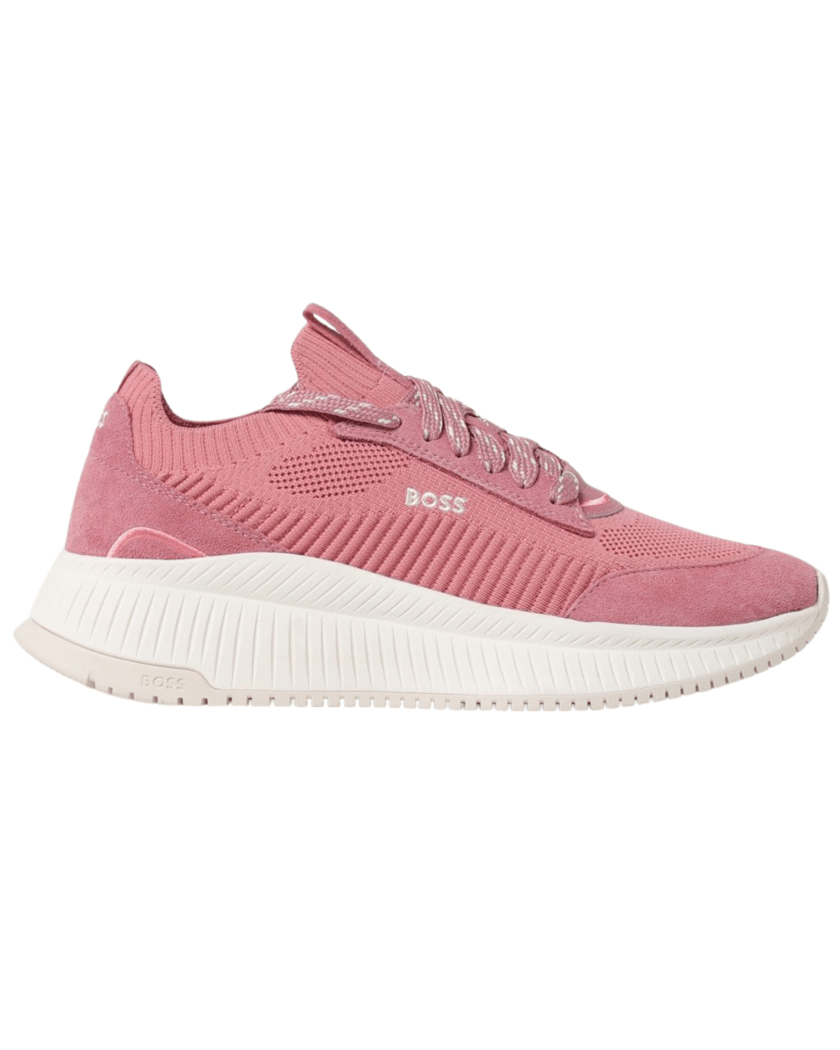 נעלי סניקרס לנשים בצבע לבן+ וורוד מבית הוגו בוס מציעות עיצוב מודרני ומינימליסטי בגוון לבן קלאסי.