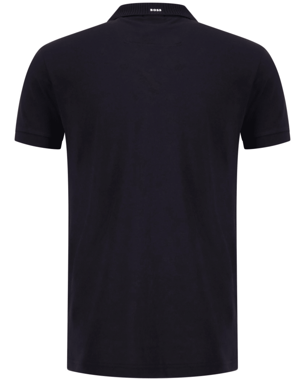 חולצת פולו קצרה בצבע שחור חלק ומעודן, בעיצוב נקי ועל-זמני שמחבר בין קלאסיקה ונוחות.