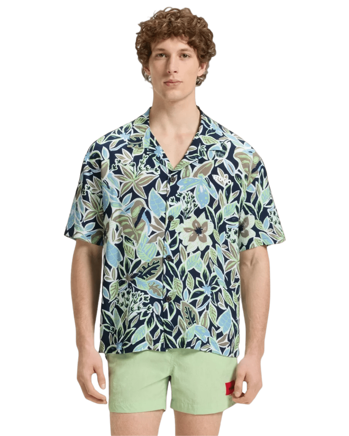 חולצת חוף לגברים בצבע כחול עם הדפס פרחוני טרופי, בעיצוב נינוח ומעודכן שמתאים לימים חמים ולבילוי בסגנון חופשי.